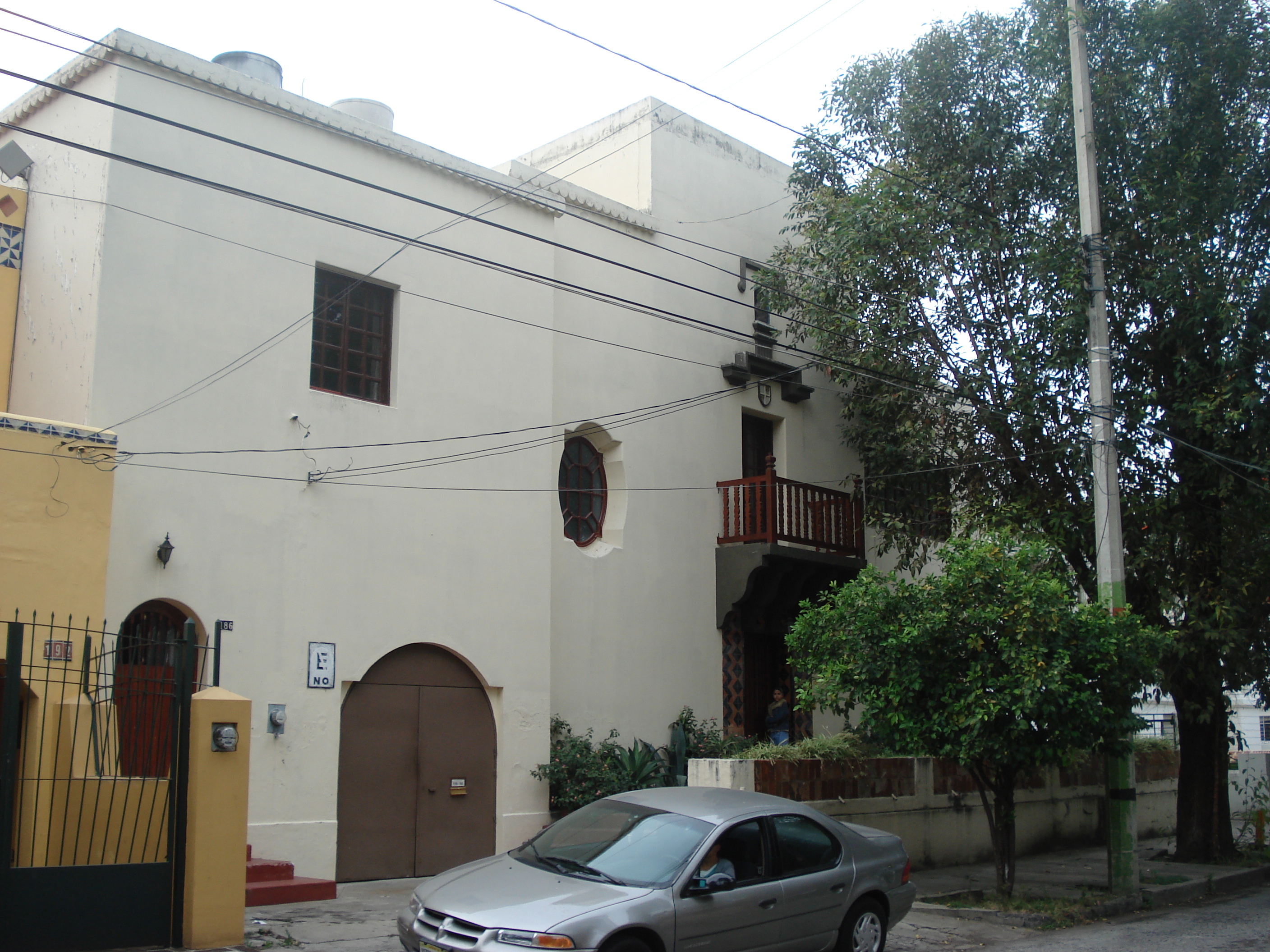 Colindando puerta con puerta con la casa en General San Martin 172 (revisada en este blog), de estilo neoclásico, se encuentra este buen ejemplo de la arquitectura habitacional de Pedro Castellanos. La casa, de los años 1930, fué para su buen amigo y socio Enrique Martínez Negrete, con quien se asoció en 1935 fundando un despacho en el que harían mancuerna por muchos años.