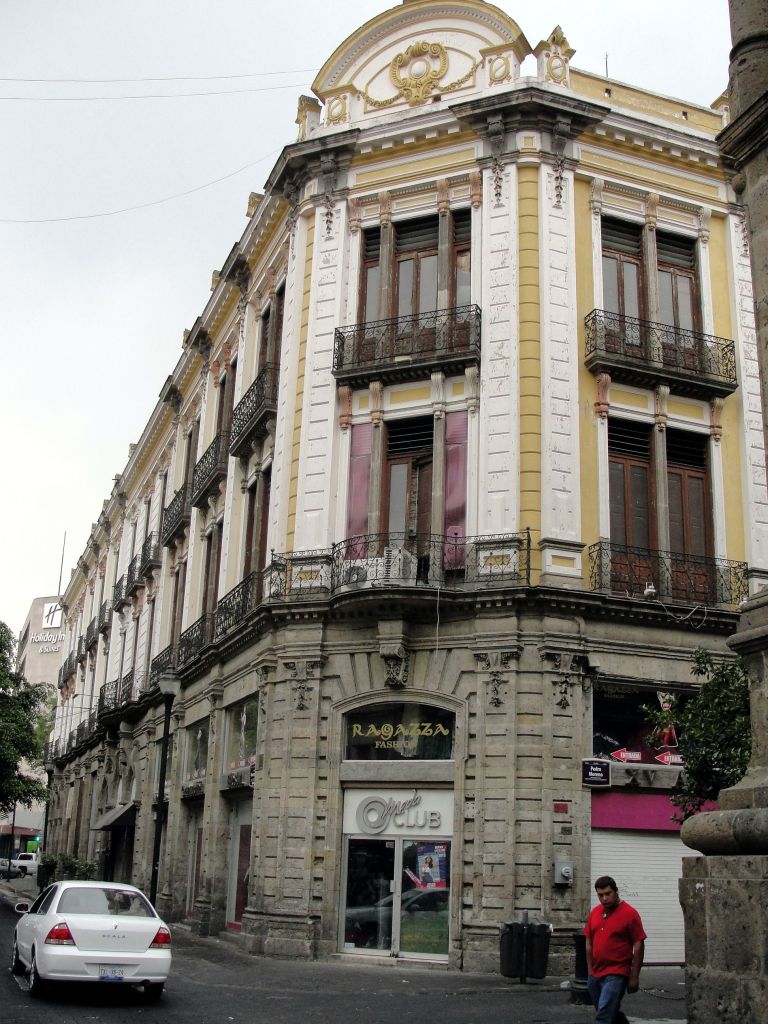 Este bello edificio, ubicado en la esquina sur-poniente de la calles Pedro Moreno y Maestranza, ha sido conservado en su mayor parte tal cual fue remodelado en el año de 1908. Su estilo ecléctico de principios del siglo XX lo hace dificil de clasificar en un estilo particular, sin embargo predominan los detalles neo-clásicos y de la escuela de las Beaux-Arts en su composición.