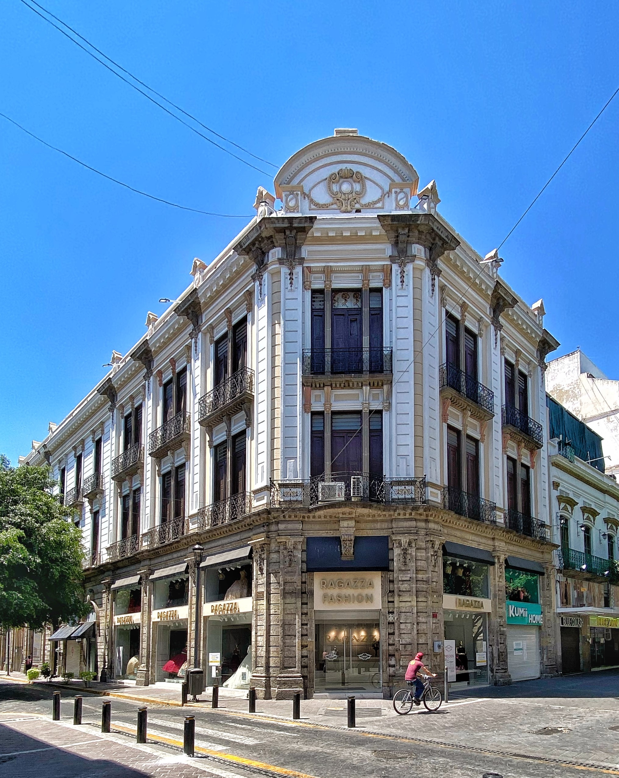 Este bello edificio, ubicado en la esquina sur-poniente de la calles Pedro Moreno y Maestranza, ha sido conservado en su mayor parte tal cual fue remodelado en el año de 1908. Su estilo ecléctico de principios del siglo XX lo hace dificil de clasificar en un estilo particular, sin embargo predominan los detalles neo-clásicos y de la escuela de las Beaux-Arts en su composición.