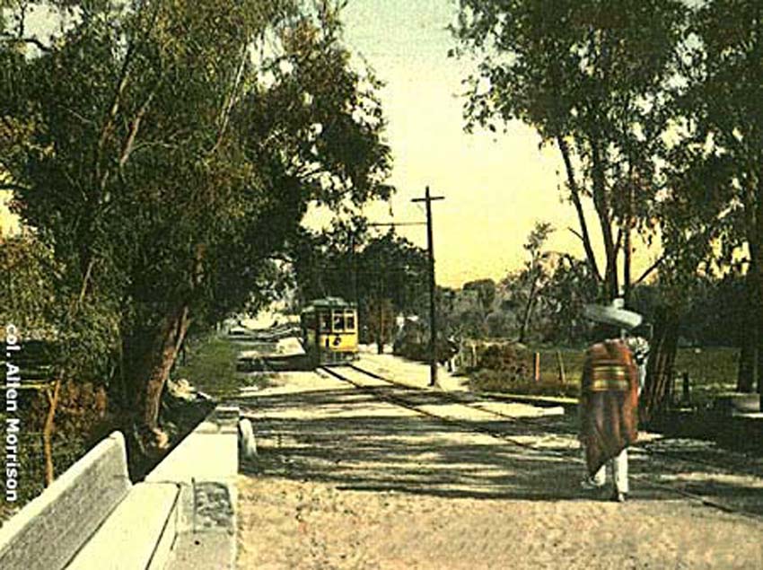 Un tranvía eléctrico circulando por Atemajac, circa 1915