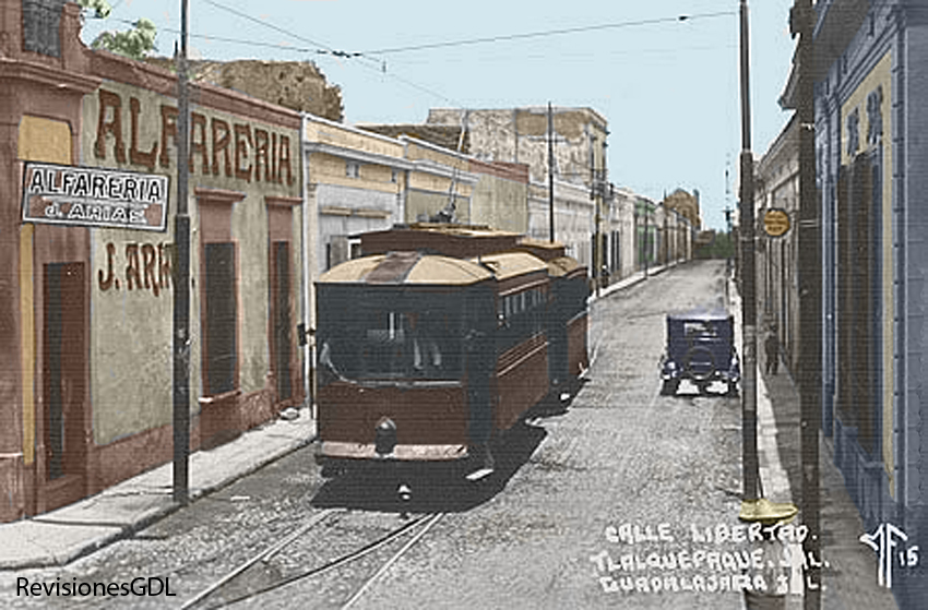 […] Hemos visitado también un barrio distante una media hora de tranvía eléctrico, en donde muchas familias acomodadas pasan los meses más cálidos: San Pedro Tlaquepaque. Hay allí muchos almacenes de objetitos, estatuitas, caricaturas, cuadros típicos mexicanos, todo fabricado con una arcilla especial que los indígenas modelan a mano con maestría maravillosa. Esta industria llamada alfarería ha adquirido en Guadalajara mucho renombre, porque los indios tienen un gusto artístico especial, y hacen trabajos magníficos, que después de cocidos, pintan de una manera muy perfecta con colores muy chillones.
