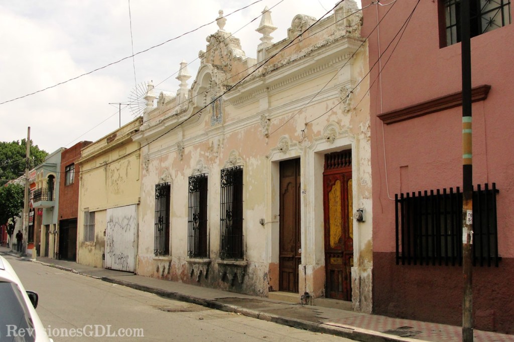 Otra característica obra del alarife Villalpando es esta casa ubicada apenas media cuadra al sur del Jardín Botánico. Presenta lo usual en la obra del maestro: elaborado diseño de pedimentos en puertas y ventanas, en este caso con mascarones de leones; querubines adosados a la arquitrabe; pretil elaborado con remate al centro que contiene mascarón, guirnaldas y trofeos. Definitivamente de gusto muy cursi hasta para la época, la obra de este arquitecto se distingue claramente. Es interesante que los emplomados originales de las ventanas, a punto de cumplir 100 años, están en aparente buen estado de conservación. La pintura exterior debe repararse, aunque los detalles parecen intactos.