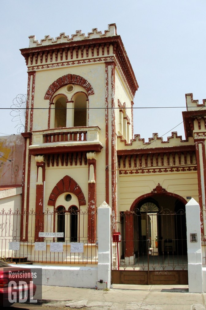 Este grupo de dos viviendas ubicadas en el barrio de Santa Tere, presenta un curioso estilo ecléctico, propio de la combinación de varios estilos decorativos en fachada, con plantas de distribución regionales. En el caso de la finca con el número 1166, podemos leer un intento de estilo gótico italiano en sus ventanas y puertas, adicionado con un torreón que asemeja en apariencia a los existentes en la toscana. La vivienda contigua (1169) de características menos pretenciosas, toma un poco de la estética neo-mudejar tan en boga durante los años 1920’s y 1930’s en la ciudad, especialmente en sus arcos de ventanas y portales. Estos estilos eclécticos sin mucha sintonía entre sus elementos, sucedían entre las personas a las que hoy llamamos despectivamente new rich, cuyo objetivo era demostrar su recientemente adquirido poder adquisitivo con muestras de excesos arquitectónicos en sus nuevas viviendas.