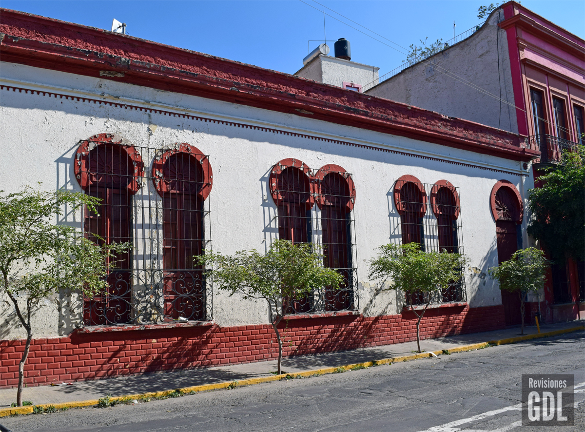 Esta casa de un piso, ubicada a media cuadra de las famosas «Nueve Esquinas», y a un costado del otrora «Cine Tonallan», destaca por sus ventanas y puerta rematadas con arco de herradura o «morisco»,trabajadas con carpintería de diseños geométricos. Este estilo se puso de moda en la ciudad durante los eclécticos años 1920’s y 1930’s. La fachada muestra tres pares de ventanas, con la puerta de acceso solitaria en el extremo sur de la casa. Aunque por fuera la casa parece más grade, debido a su extenso frontal, la forma del terreno es irregular y provoca que la planta de la casa adopte formas poco usuales. Un patio (hoy techado) servía para distribuir las habitaciones alrededor de tres lados de la finca, que se desplanta en forma de «C» en el predio. Fuera de la puerta de ingreso, reemplazada por una de lámina de metal, el resto de la fachada de la casa se encuentra prácticamente en su estado original.