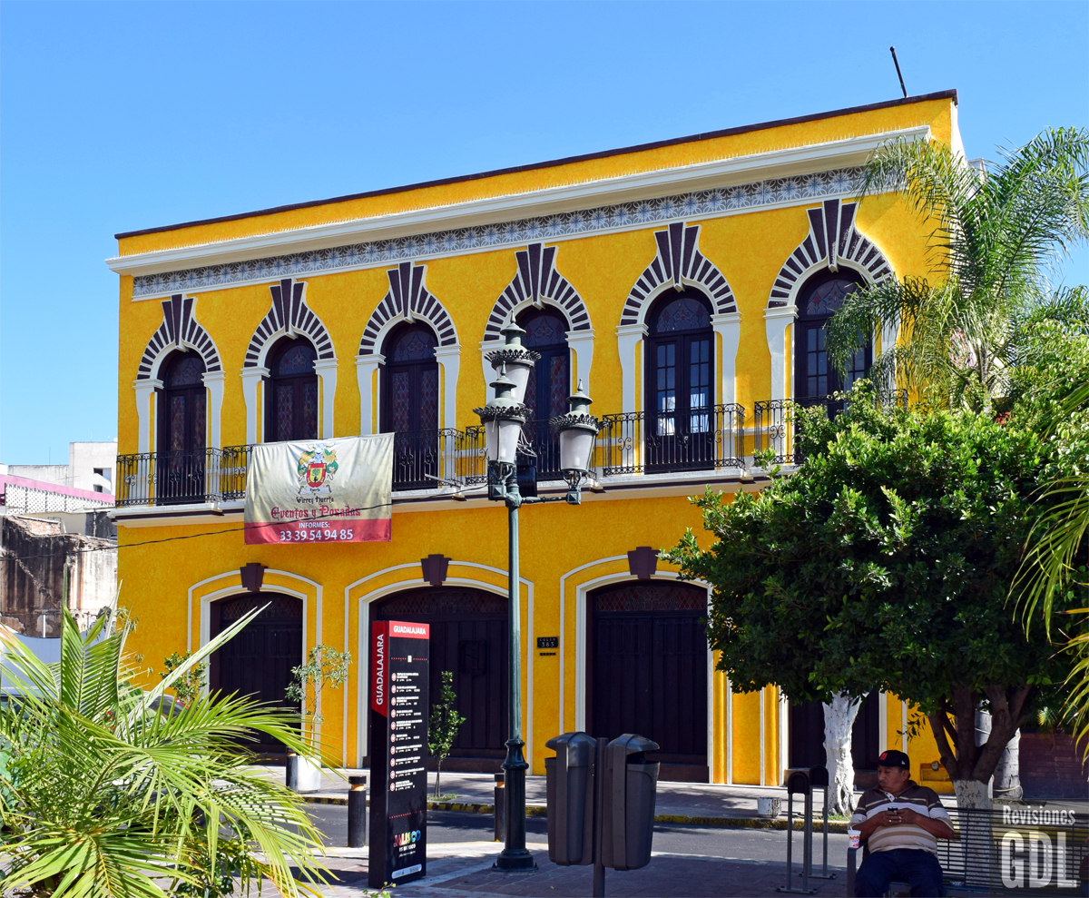 De esta casa ecléctica en el «mero» Barrio de las Nueve Esquinas, destacan sus seis ventanas superiores, de influencia morisca o que también pudieran interpretarse como «Gótico Veneciano». En cuatro de ellas se observan los emplomados originales de diseños geométricos y coloridos, al igual que en la parte superior de las puertas de planta baja. Es una lástima la selección de color de pintura que muestra hoy en día.