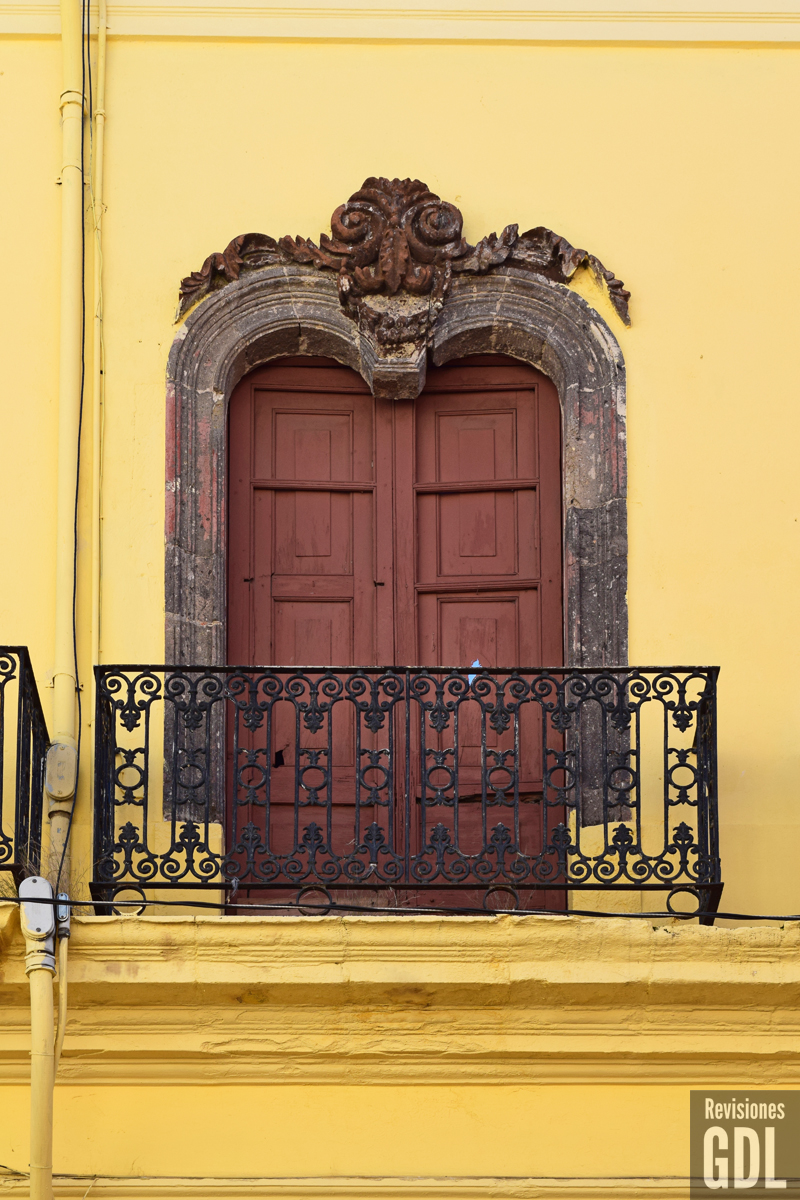 Esta es una de las calles de la zona centro de la ciudad más sucias y maltratadas. Hay basura por todos lados y la mayoría de los edificios albergan gente que renta cuartos por día, bodegas y algunas imprentas que abren un día sí, y un día no. En mi visita, una patrulla de la Policía de Guadalajara saludó a un par de personas de edad avanzada que tomaban unas caguamas en la calle. Era domingo, así que no había porqué llamarles la atención, supongo. Con todo, hay algunas construcciones interesantes todavía, incluyendo esta.
