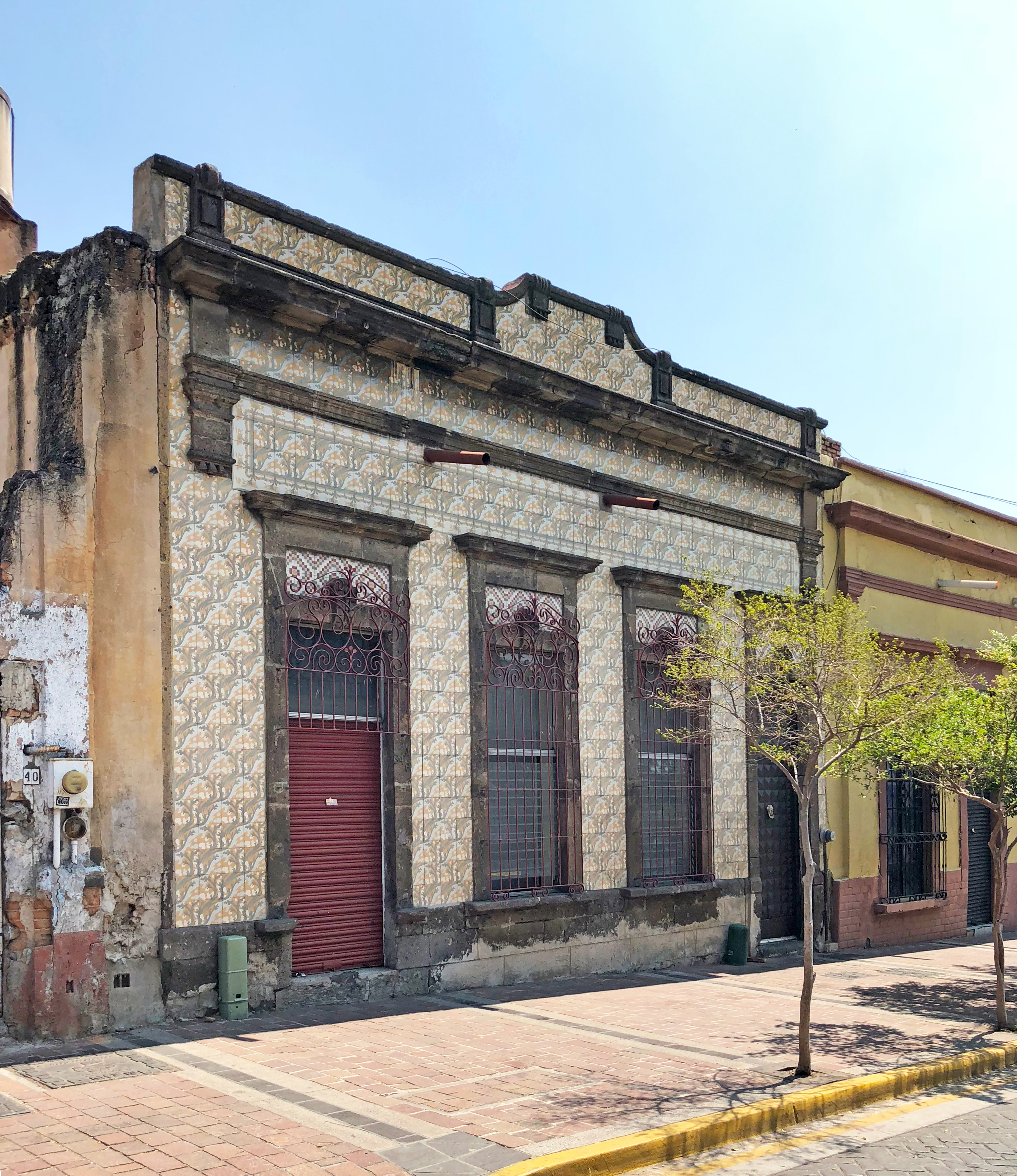 Ubicada directamente enfrente de la casa de San Felipe 39, está está finca de un sólo piso y fachada de azulejos. Muy al estilo de su vecina en el número 69 (que originalmente también era de un piso*), la casa presenta un diseño simétrico, de tres ventanas y una puerta (una de las cuales, del lado poniente, fue convertida a puerta en época posterior). Los pedimentos son de cantera gris, al igual que el pretil, de más sencilla manufactura que el ejemplo del número 69, lo que nos habla quizá de un presupuesto de construcción más limitado.