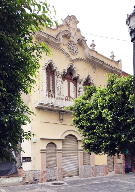 El Maestro Porfirio Villalpando, cuya carrera arquitectónica en los años 1920’s y 1930’s nos ha dejado un legado interesante de obras eclécticas, incluye esta casa hoy parte de la tienda Ramírez Rábago y unida a la construcción que tiene al norte. El estilo característico del maestro es similar al de otros ejemplos autoría del mismo alarife, más específicamente y en especial, a los Baños Venecia (Mezquitán 350) o a la casa en Belén 460.