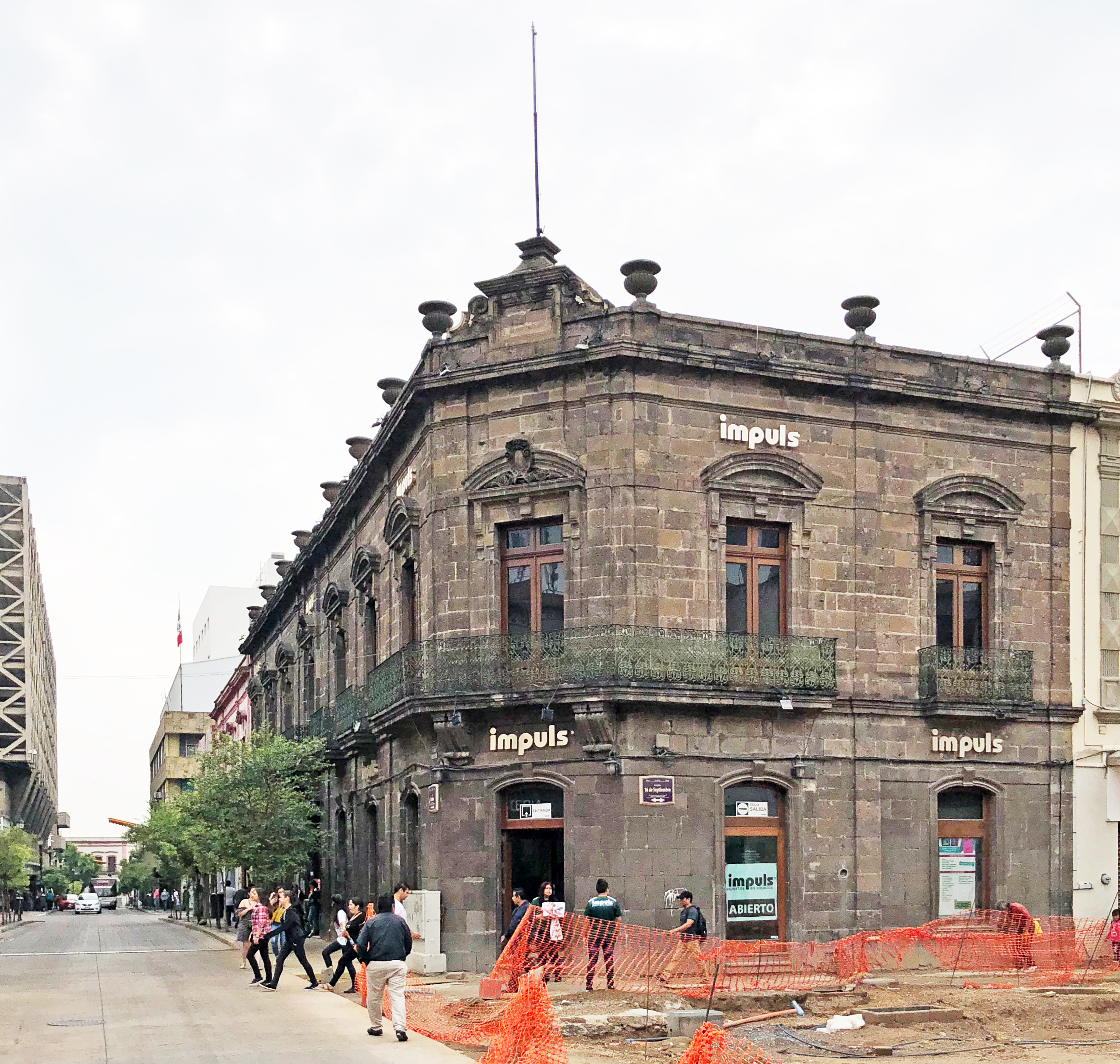 En la esquina de Madero y 16 de Septiembre se encuentra el sobrio y elegante edificio que fuera del Banco de Jalisco, formando junto con su vecino de la acera norte una de las mejores esquinas de la ciudad, arquitectónicamente hablando. Este edificio de cantera, que alguna vez perdió su planta baja original, fue correctamente restaurado y hoy luce casi como el día que abrió sus puertas a finales de los 1880’s.
