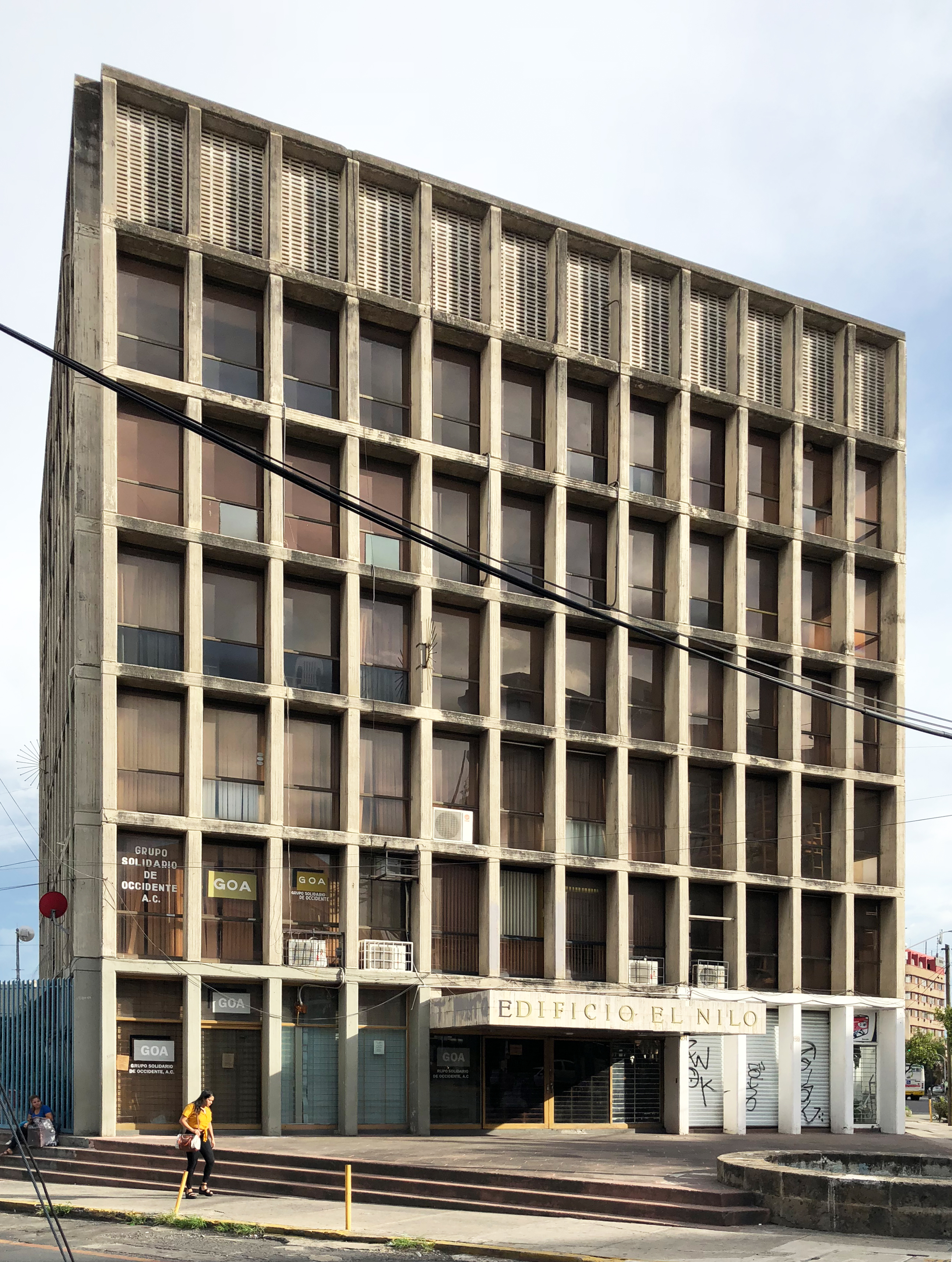 Quizá uno de los edificios modernistas más atemporales en Guadalajara, el edificio El Nilo, del arquitecto Julio de la Peña es una obra maestra del brutalismo de los años 1960’s. Maltratado por paso de los años y por unos propietarios descuidados, el edificio sufre por el abandono económico del Centro de la ciudad, por un entorno inmediato complicado y por la falta de respeto a la arquitectura original.