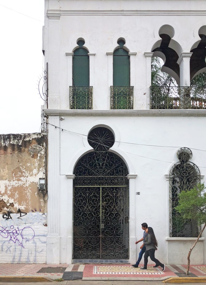 Fue Segundo Díaz quien le dio forma a la construcción que hoy conocemos. El adquirió el predio en 1902 y fue hasta 1910 cuando terminó la construcción de lo que sería su segunda finca en el mismo estilo arquitectónico y en la misma calle; la primera la revisamos ya, y se ubica en San Felipe 39. La fachada de la casa tiene un diseño ecléctico caracterizado por sus puertas y ventanas con arcos lobulados, y sus dos torretas laterales. En la planta alta, un pasillo que hace las veces de balcón corrido al centro ocupa cinco ventanas y forma un pasillo entre las dos alas de la casa, separadas por un patio. La construcción tiene tres de estos patios, asimétricos entre ellos y de distintos tamaños. El principal forma el recibidor al aire libre de la casa, que cuenta con 24 habitaciones**.