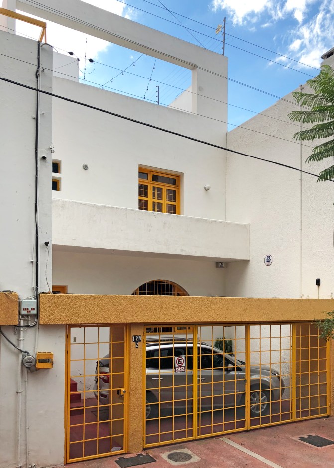 Una de las casas de Barragán construidas en su etapa final en Guadalajara, contemporáneas del Parque Rojo (hoy Revolución). El área se despejó al ser demolida la Penitenciaría de Escobedo (ver Los Edificios que Guadalaja Extraña), lo cual liberó al zona al desarrollo. El Lic. Emiliano Robles León, primer cliente de Luis Barragán, encargó su tercera casa al arquitecto, esta vez para renta.