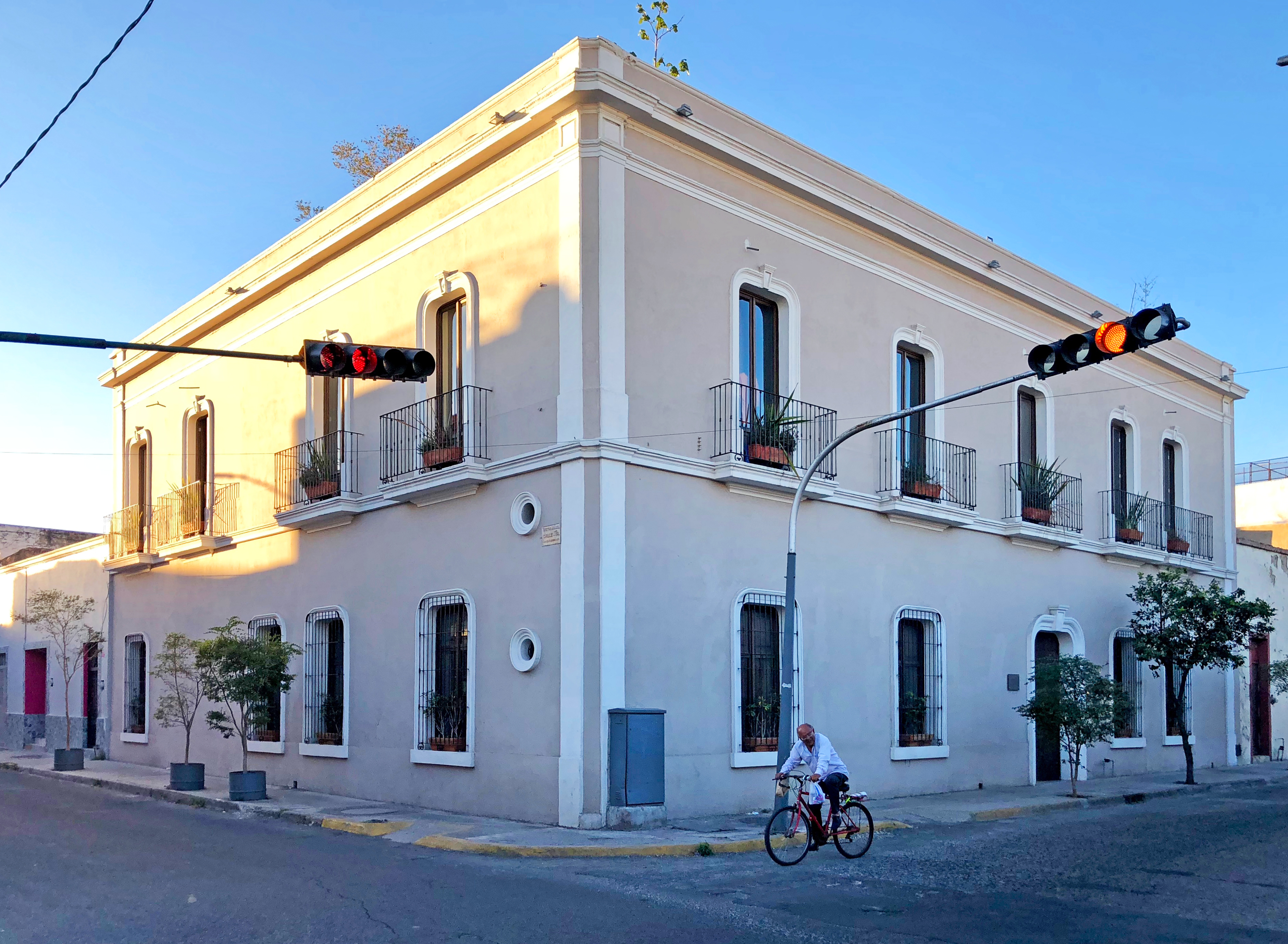 Una excelente labor de restauración de una finca original del siglo XVIIII, esta casa de dos pisos fue rescatada por los arquitectos Ignacio y José Luis Orozco Soto y devuelta a su elegante sencillez perdida por décadas de modificaciones insensibles. La casa, originalmente una finca regional de un sólo piso, data quizá de finales del siglo 18 o principios del 19. En épocas posteriores, quizá en los 1920’s, le fue añadido un segundo piso al estilo del primero. Hoy en día y después de su restauración, la casa funciona como Hotel Boutique, con algunos metros añadidos en la azotea -invisibles desde la calle- para servicios y áreas comunes, incluyendo una pequeña alberca.