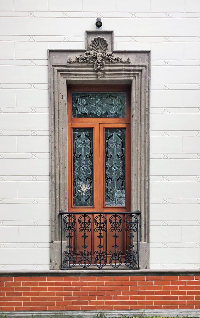 El eclecticismo de la casa se hace evidente en los elementos decorativos; capiteles corintios, balaustradas de barro y macetones de cantera; el tímpano sobre el zaguán, de ladrillo aparente. Destacan entre los detallas, las tallas en pedimentos y columnas, de excelente factura. Quizá los canteros que el Ing. De Alba utilizó fueron los mismos de la casa en Madero 302, uno de los mejores ejemplos de talla de cantera en la ciudad.