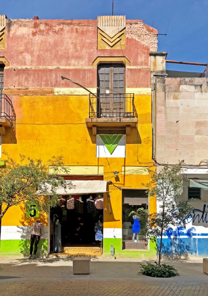 La planta baja, en cambio, fue desfigurada al adaptarse para comercio, fenómeno recurrente en el centro histórico y que aquí ejemplifica lo que podríamos llamar la “tragedia de las plantas bajas”. Los vanos originales fueron ensanchados y modificados, borrando casi por completo el ritmo arquitectónico que seguramente replicaba el de la planta alta.