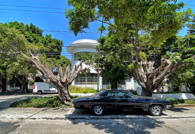El elemento circular de la esquina sin duda es el principal elemento arquitectónico y destaca por su marquesina volada. La herrería de las ventanas, de rectángulos verticales acentúa su carácter vertical. El uso de elementos modernistas como el vitroblock, las formas boleadas de los muretes exteriores y los diseños Art Decó en la puerta principal reafirman su carácter como uno de los mejores ejemplos de este estilo en la ciudad, que algunos llaman «funcionalista».