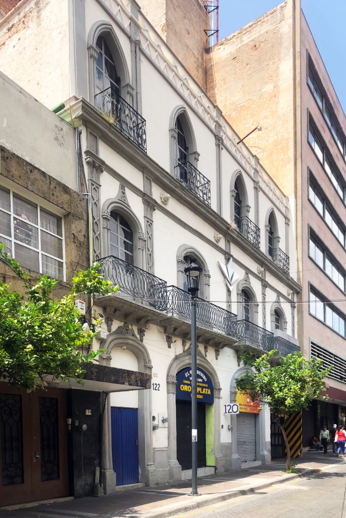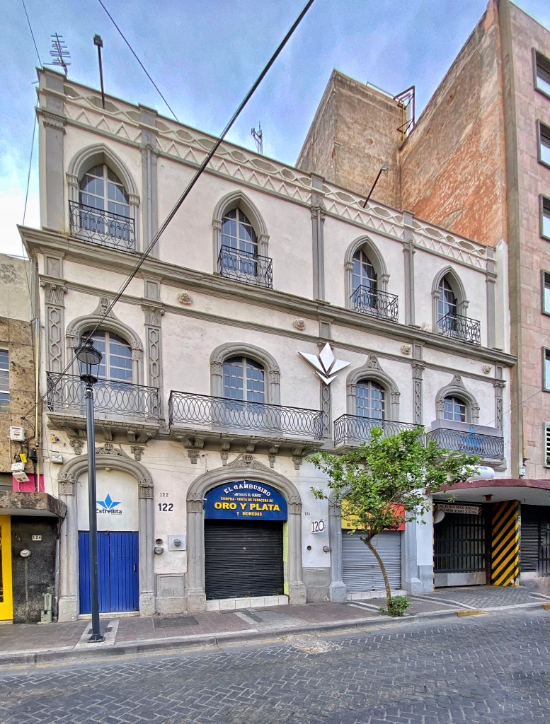 No hay muchos ejemplos del neogótico en Guadalajara, estilo arquitectónico que cobró fuerza en el mundo occidental en el siglo xix, especialmente entre 1860 y 1890. En la ciudad, el ejemplo por excelencia es el Templo Expiatorio (terminado hasta los 1950’s), sin embargo este pequeño edificio casi perdido entre dos bodrios modernos en quizá el mejor ejemplo civil de este estilo de arquitectura. (Otros ejemplos del neogótico, véase: Casa Kunhardt Urrea, Garibaldi 569)