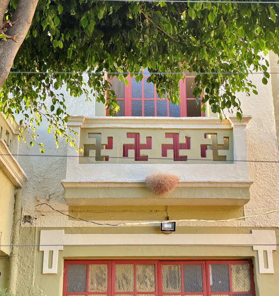 Aunque esta casa dista de tener méritos arquitectónicos notables, sus ornamentos despiertan la curiosidad e imaginación de quien circula por esta Avenida en la Colonia Moderna. En este caso las esvásticas o cruces gamadas que adornan balcones y pretiles de la finca de forma portentosa. Tengo poca duda que se trata del mismo autor de la casa en Francia 1333, a sólo dos cuadras de distancia y que muchos llaman erróneamente «La Casa Nazi». Esto es mera desinformación ya que ambas fincas fueron construidas en la segunda década del siglo XX, al menos una década antes del nacimiento del partido y la adopción de la cruz gamada como su símbolo.