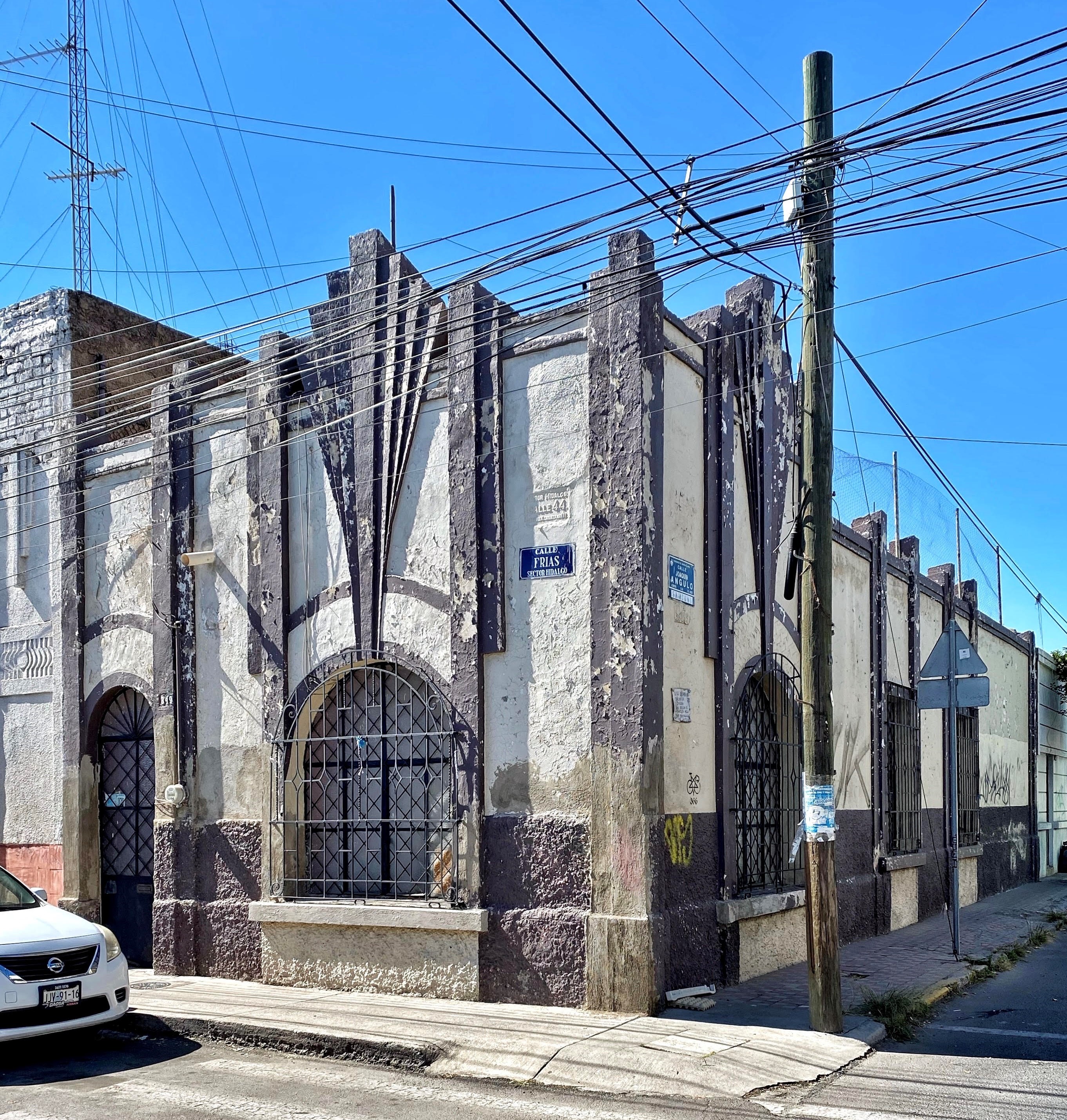 Esta casa con claras influencias Art Déco, forma parte de un conjunto de tres casas casi seguramente construidas por el mismo arquitecto al mismo tiempo en 1940*, una de las cuales ya analizamos por su peculiar estilo Neo Prehispánico-Déco (Frías 345) y de una cuadra maravillosamente ecléctica donde también hay fantasías Neo Moriscas (Frías 331).