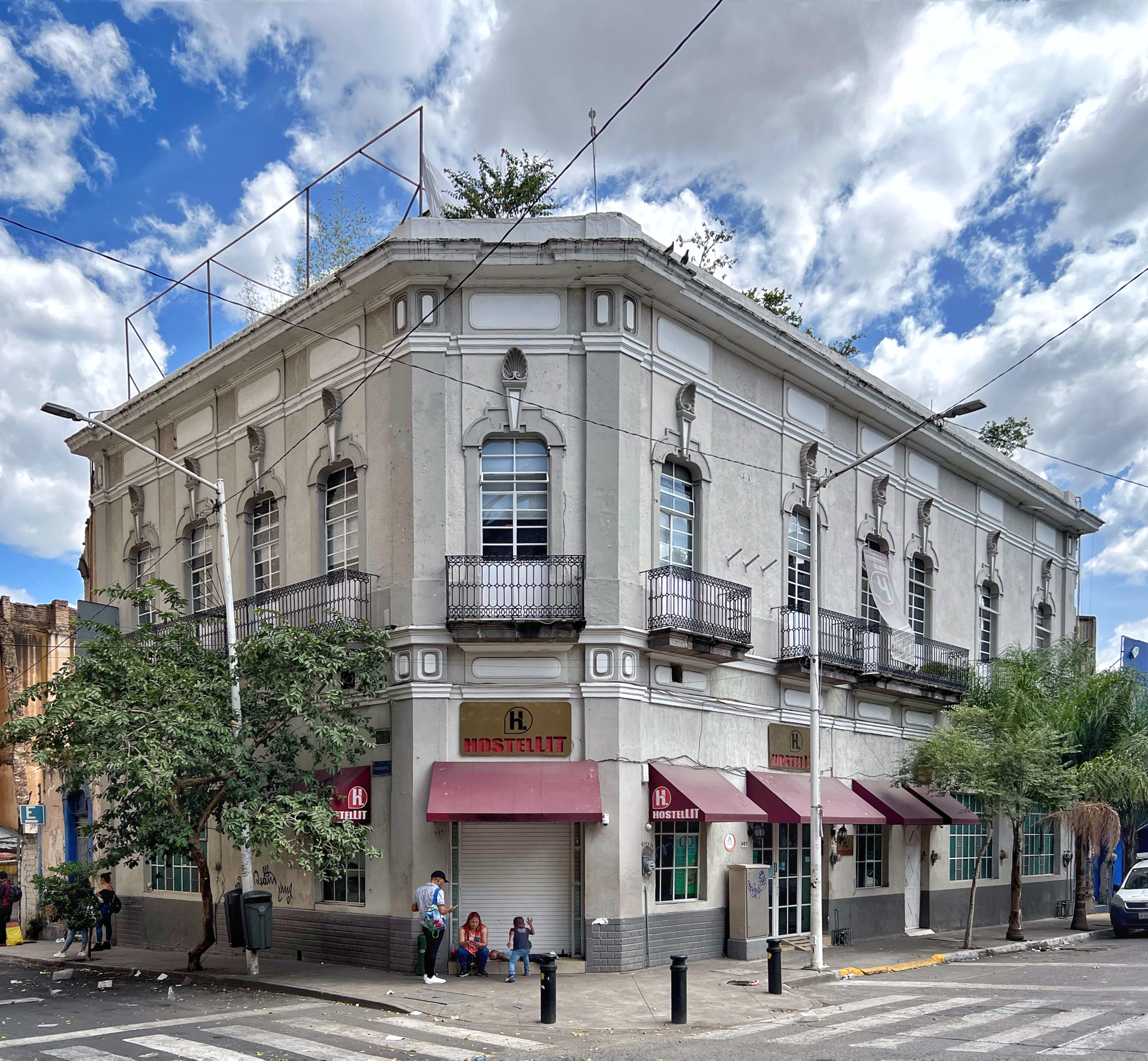 Este edificio de dos plantas, ecléctico posiblemente de la primera década del siglo 20, se mantiene en buen estado. Tenía un hermano, del mismo arquitecto y diseño general, del lado oriente, demolido en los 1980’s y hoy un estacionamiento. Queda una puerta y un pedazo de muro que atestigua su existencia.