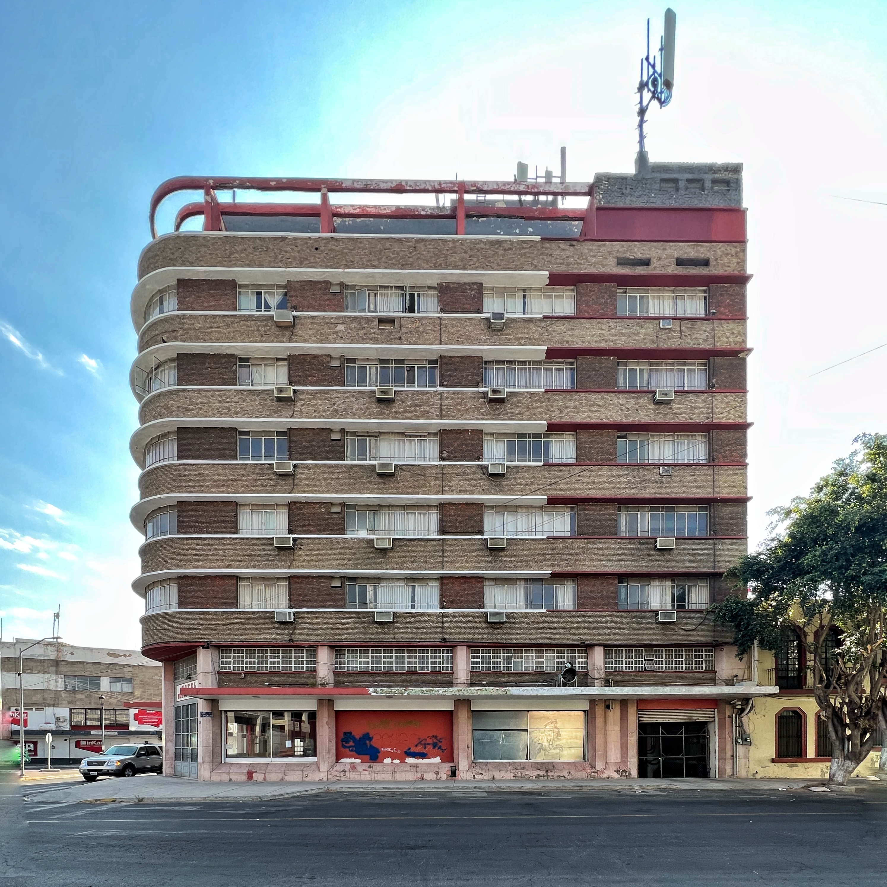 En una cuchilla de unos 600 metros cuadrados, entre las calles de Ramón Corona, Comercio y Nueva Galicia se levanta este edificio moderno, de los mejores ejemplos de este estilo en la ciudad. Su combinación de funcionalismo con alguna pizca de «streamline moderne» intriga, sobre todo porque parece intacto en exteriores.