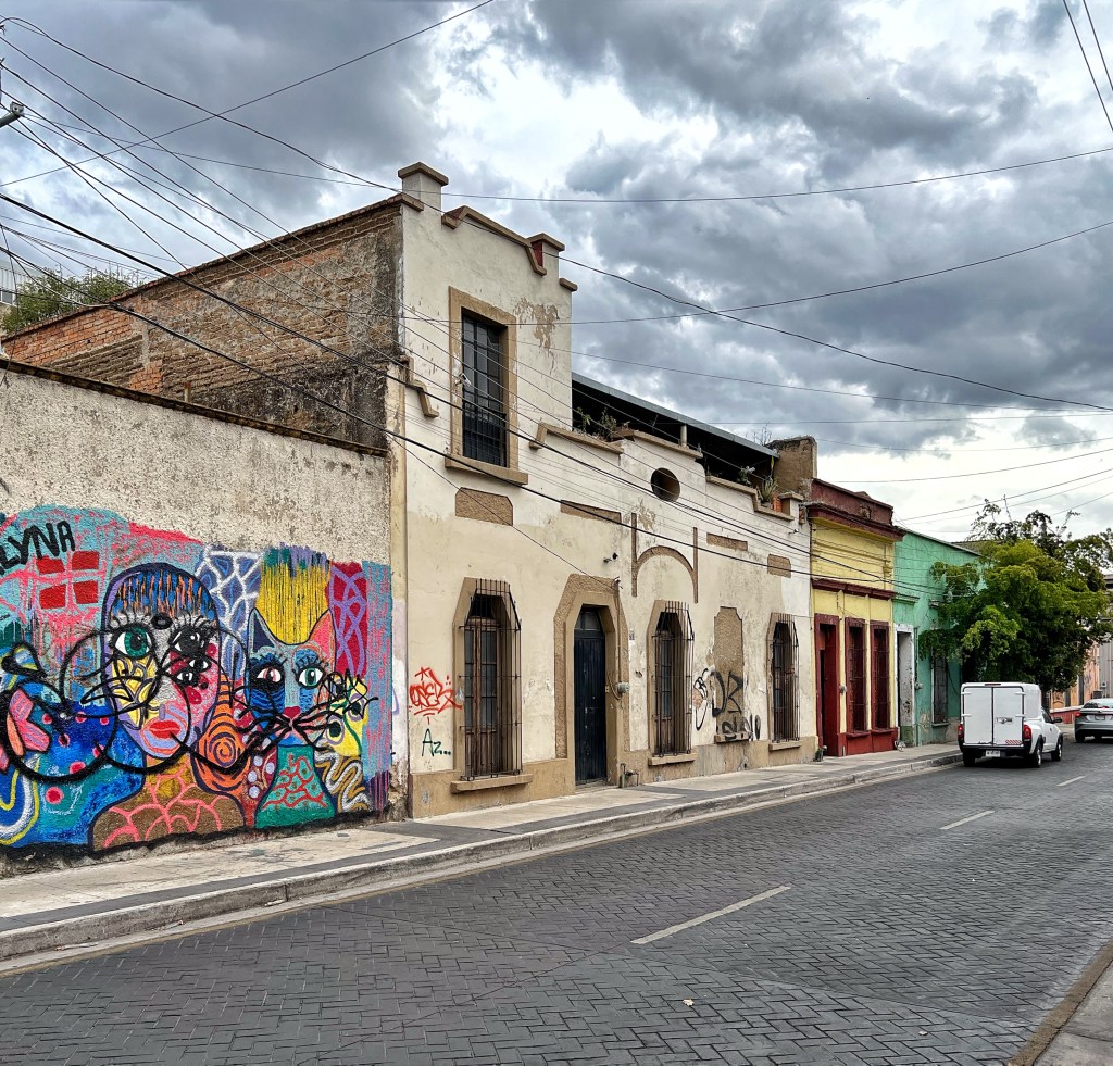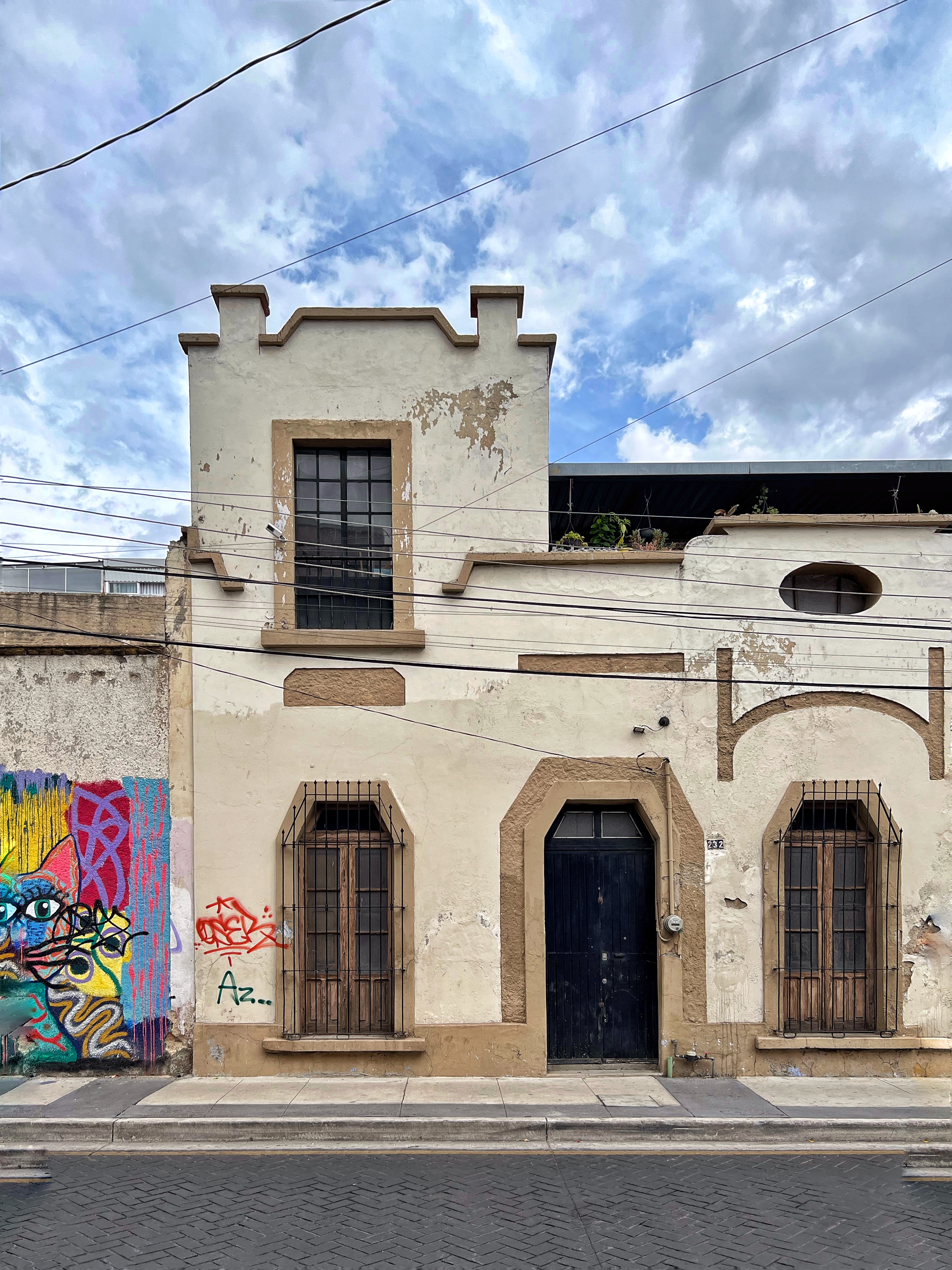Otro ejemplo interesante de una finca que originalmente fue quizá de estilo regional, pero que fue estéticamente transformada en un ecléctico con claros rasgos Art Déco, según las modas de la época. La delatan sus puertas y ventanas de esquina recortadas, los pretiles geométricos y las decoraciones de relieve negativo en aplanados. Los elementos regionales siguen existiendo en las proporciones generales de las plantas, puertas y ventanas (nótense las alturas y proporciones similares a la casa regional vecina) y la planta con patio que se nota en la vista aérea.