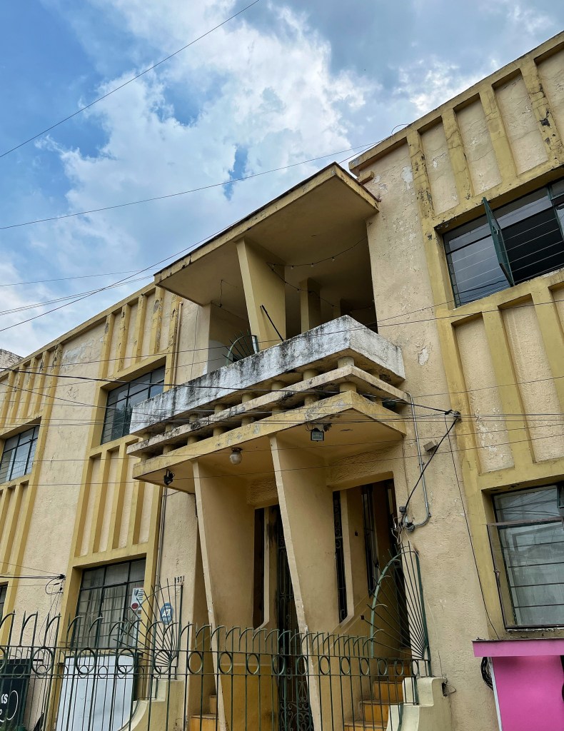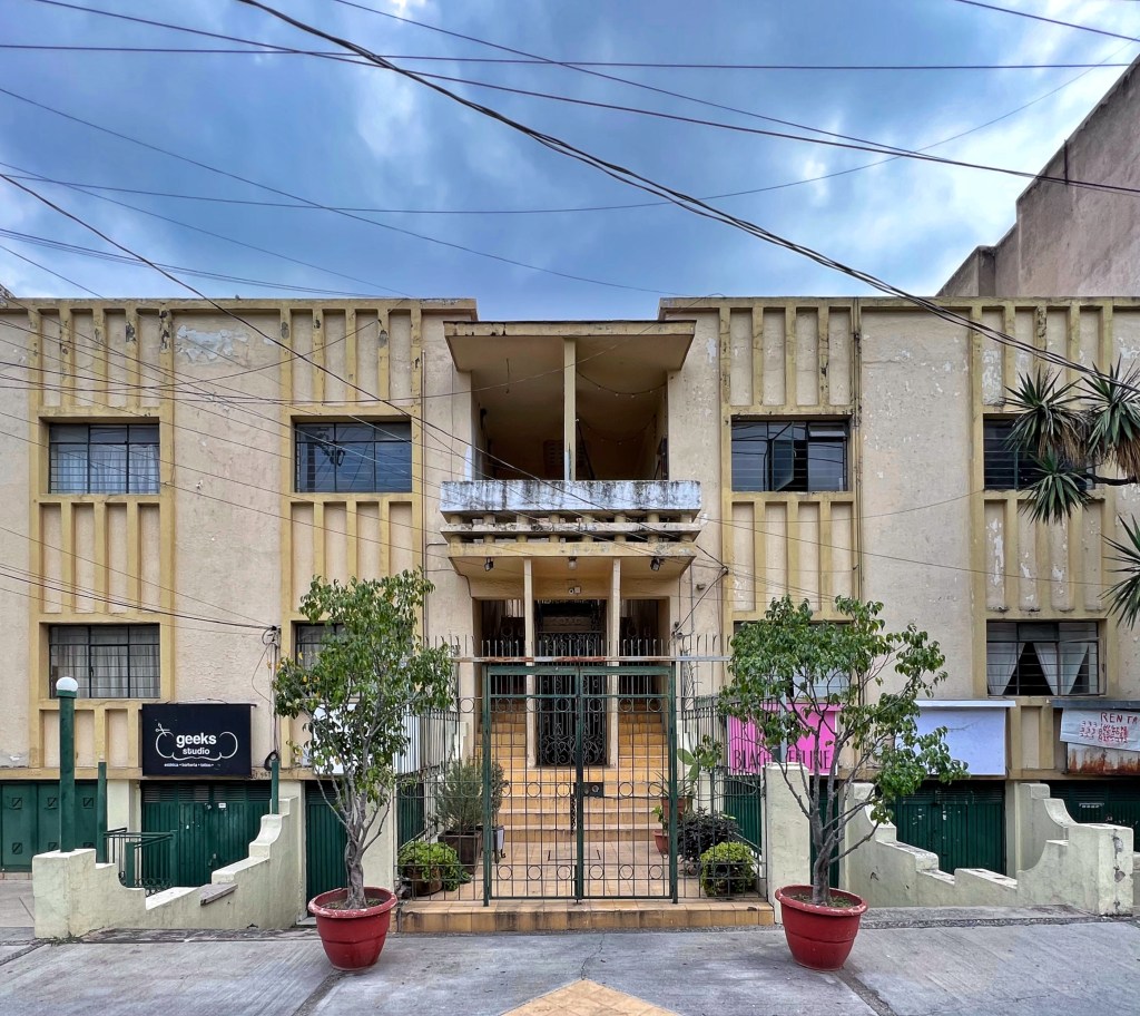 Este edificio de departamentos de tres niveles, se desplanta en un terreno de aproximadamente 520 metros cuadrados, media cuadra «abajo» de Av. Chapultepec. Originalmente tenía el número 283, que todavía se ve en su fachada; el edificio destaca por su medio sótano que alberga locales comerciales pequeñas, siempre con alta demanda (y rotación).