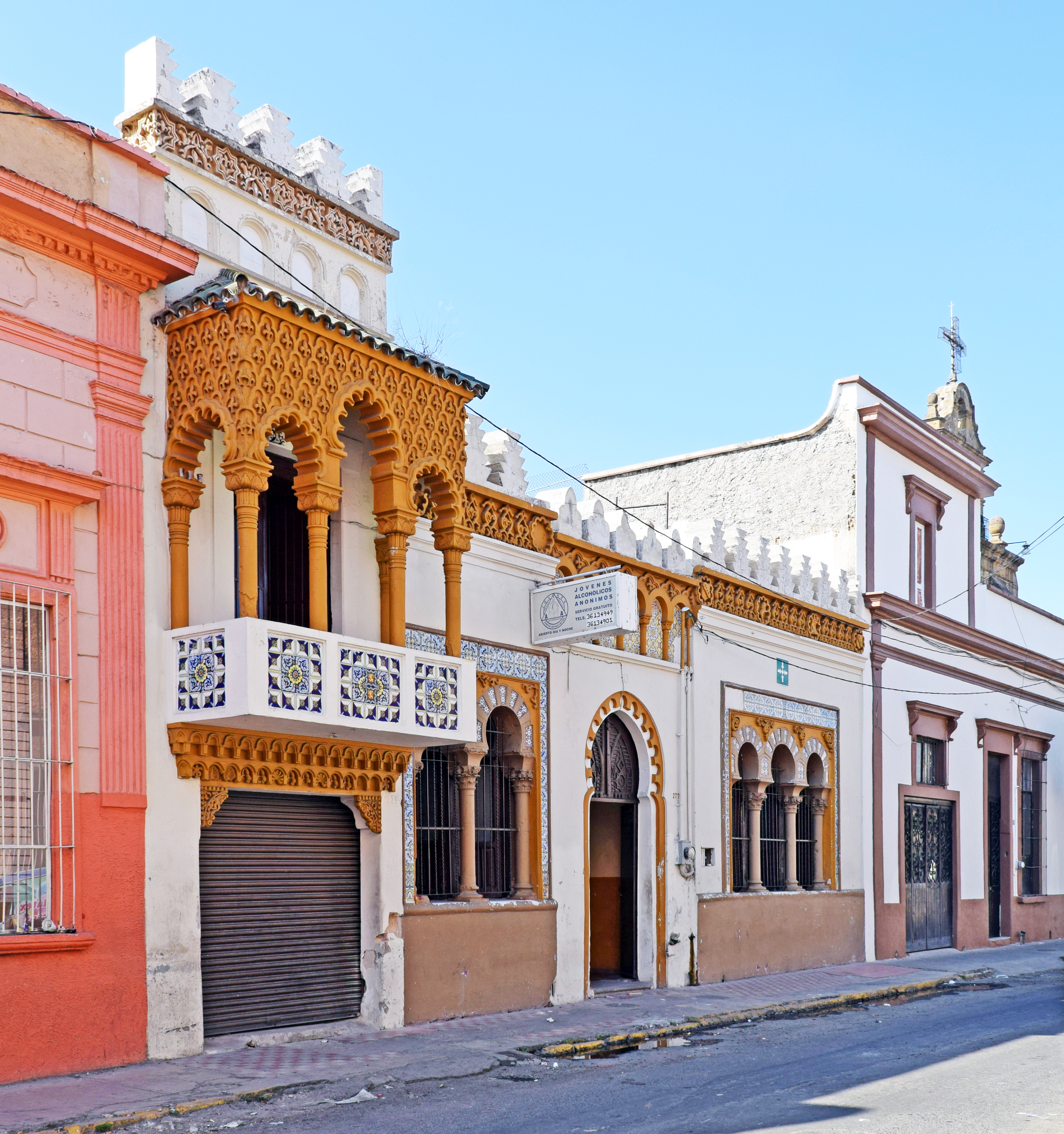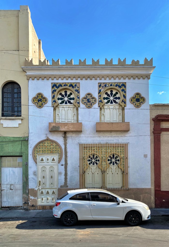 Finalmente, destaca la manufactura de los aplanados de argamasa utilizado en los enjarres de la casa, particularmente en la finca de González Ortega 277, que presenta un balcón con un triple arco poli lobulado, y arcos de herradura en las plantas bajas. Curioso que dentro de los ornamentos de la fachada destaquen escudos heráldicos a la usanza española cristiana, señal del eclecticismo que reinaba y que inevitablemente seguía las peticiones de los clientes o propietarios.