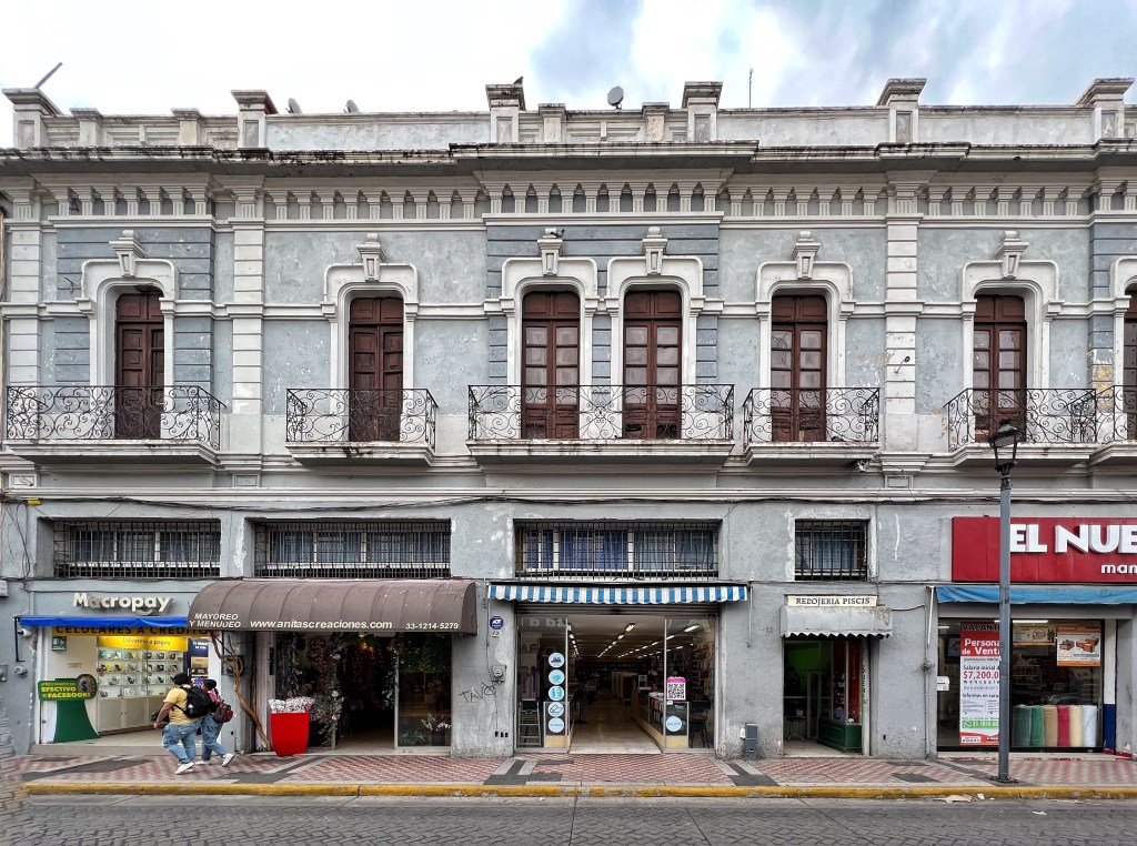 A media manzana entre las calles de Hidalgo y Morelos, sobre González Ortega, está esta casona del porfiriato que conserva en buen estado su planta alta. La baja en cambio, sufrió del Síndrome de las Plantas Bajas hace muchos años.