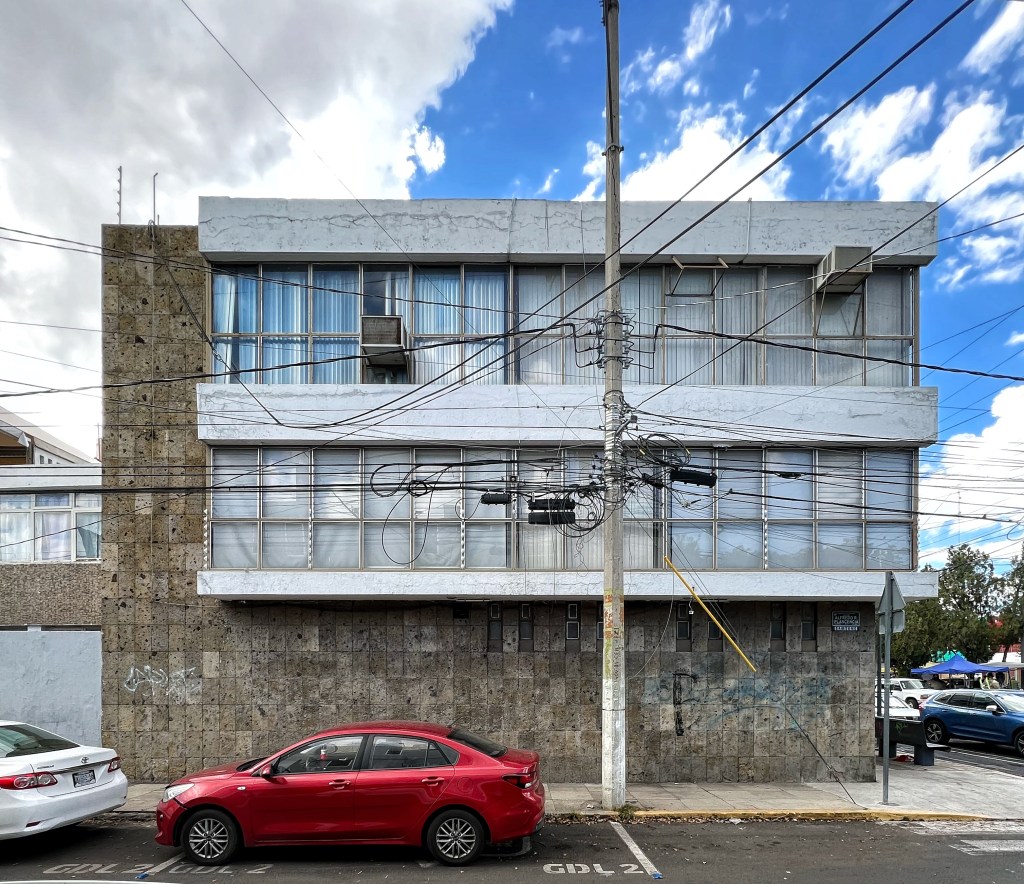Una joya moderna es este edificio esquinero que se encuentra sobre Av. México, dos cuadras al oriente de Av. Américas y justo en la glorieta donde da inicio la Plaza de la República de Julio de la Peña. Y para probar que este pequeño edificio, desplantado en tan solo 200 metros cuadrados de terreno, es verdaderamente una joya del mmodernismo necesitamos solamente tres puntos clave: