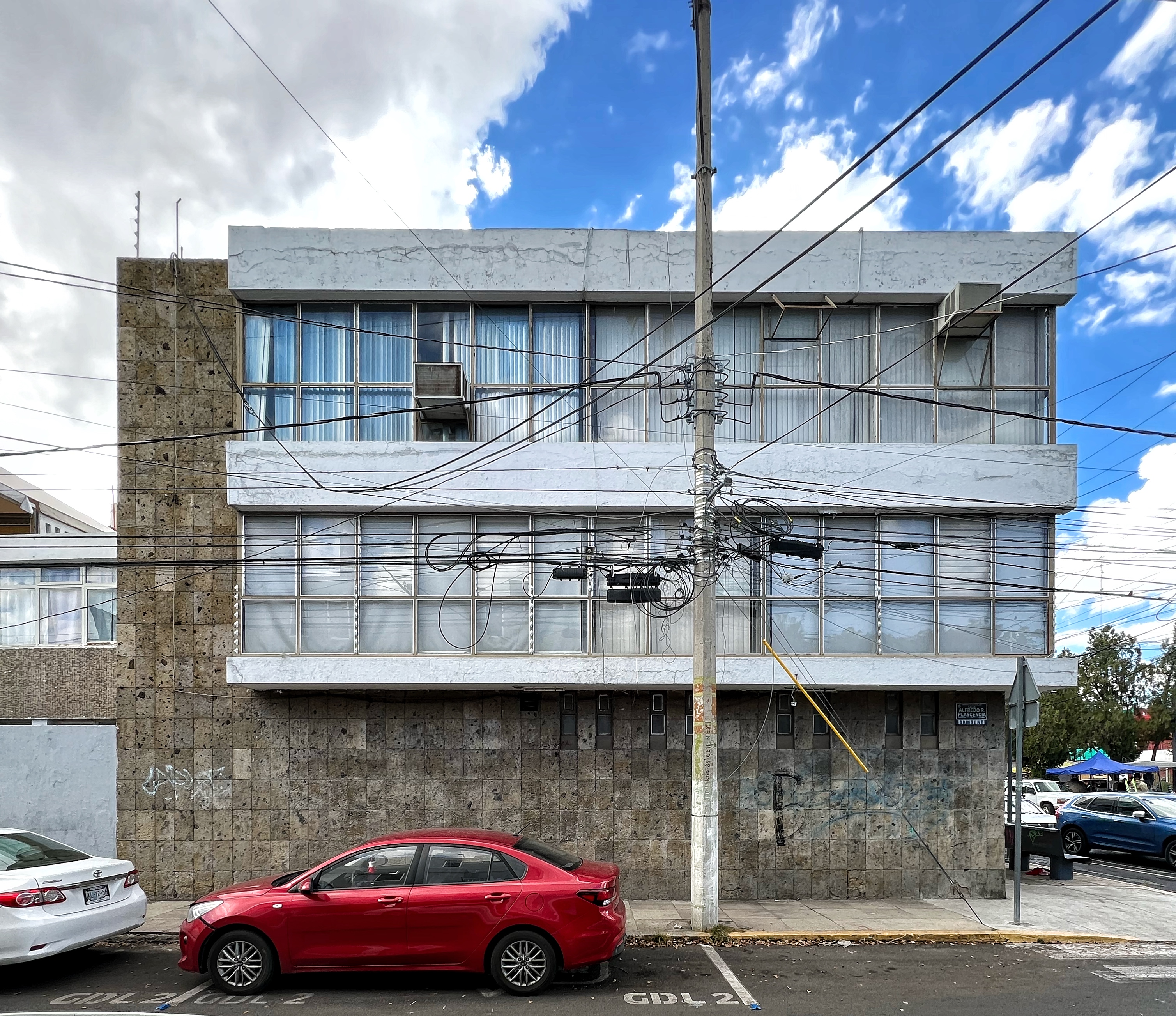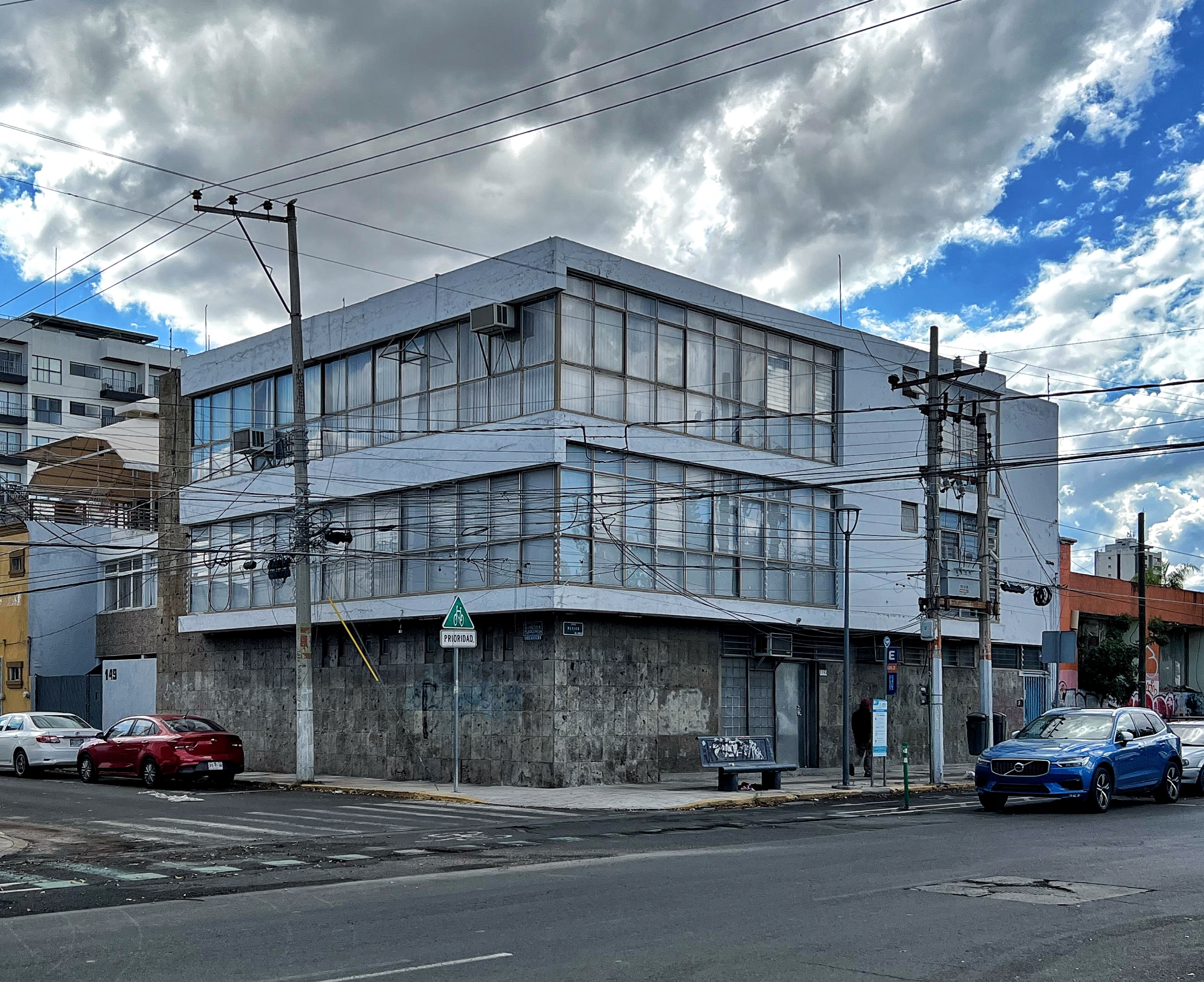 Una joya moderna es este edificio esquinero que se encuentra sobre Av. México, dos cuadras al oriente de Av. Américas y justo en la glorieta donde da inicio la Plaza de la República de Julio de la Peña. Y para probar que este pequeño edificio, desplantado en tan solo 200 metros cuadrados de terreno, es verdaderamente una joya del mmodernismo necesitamos solamente tres puntos clave: