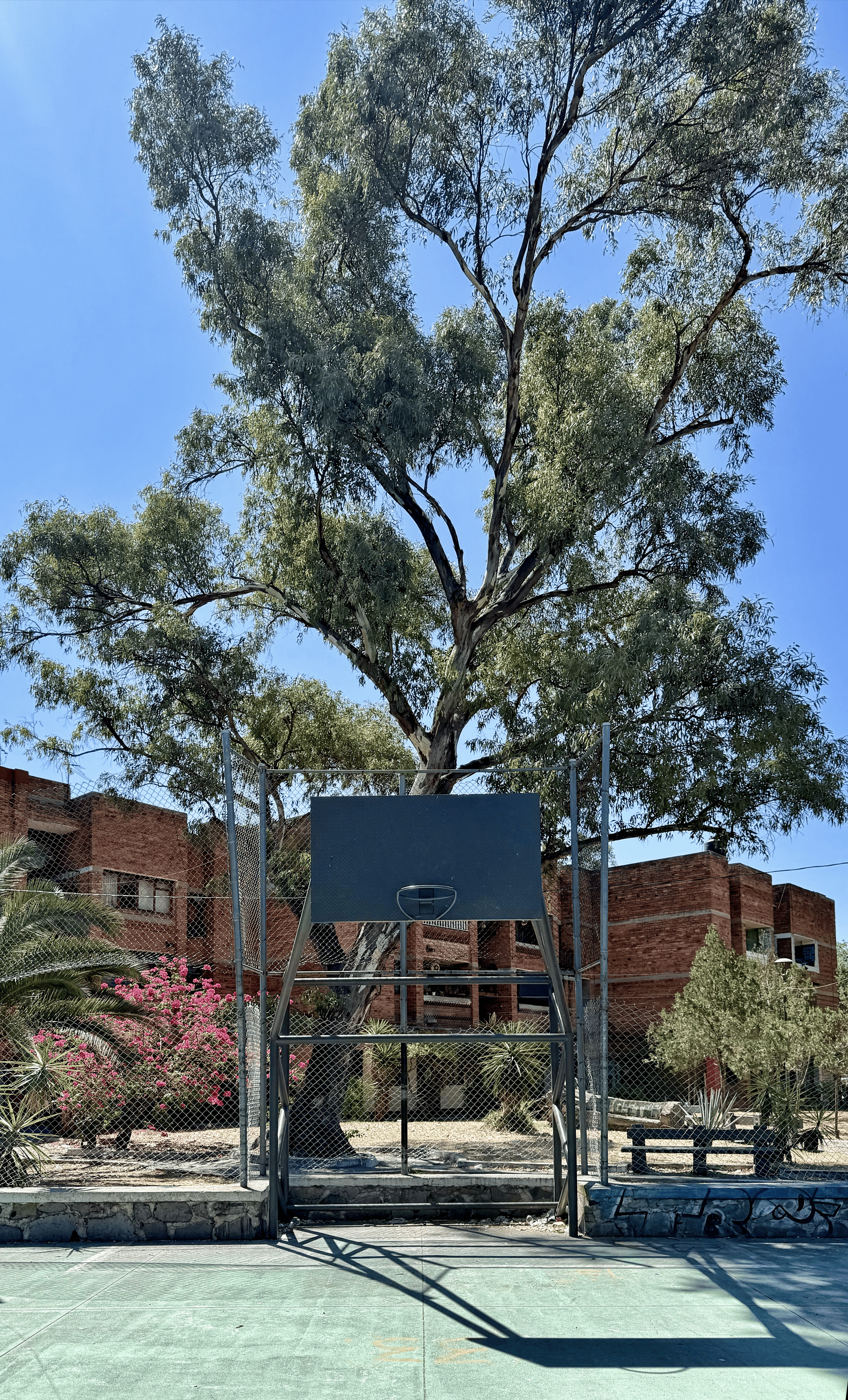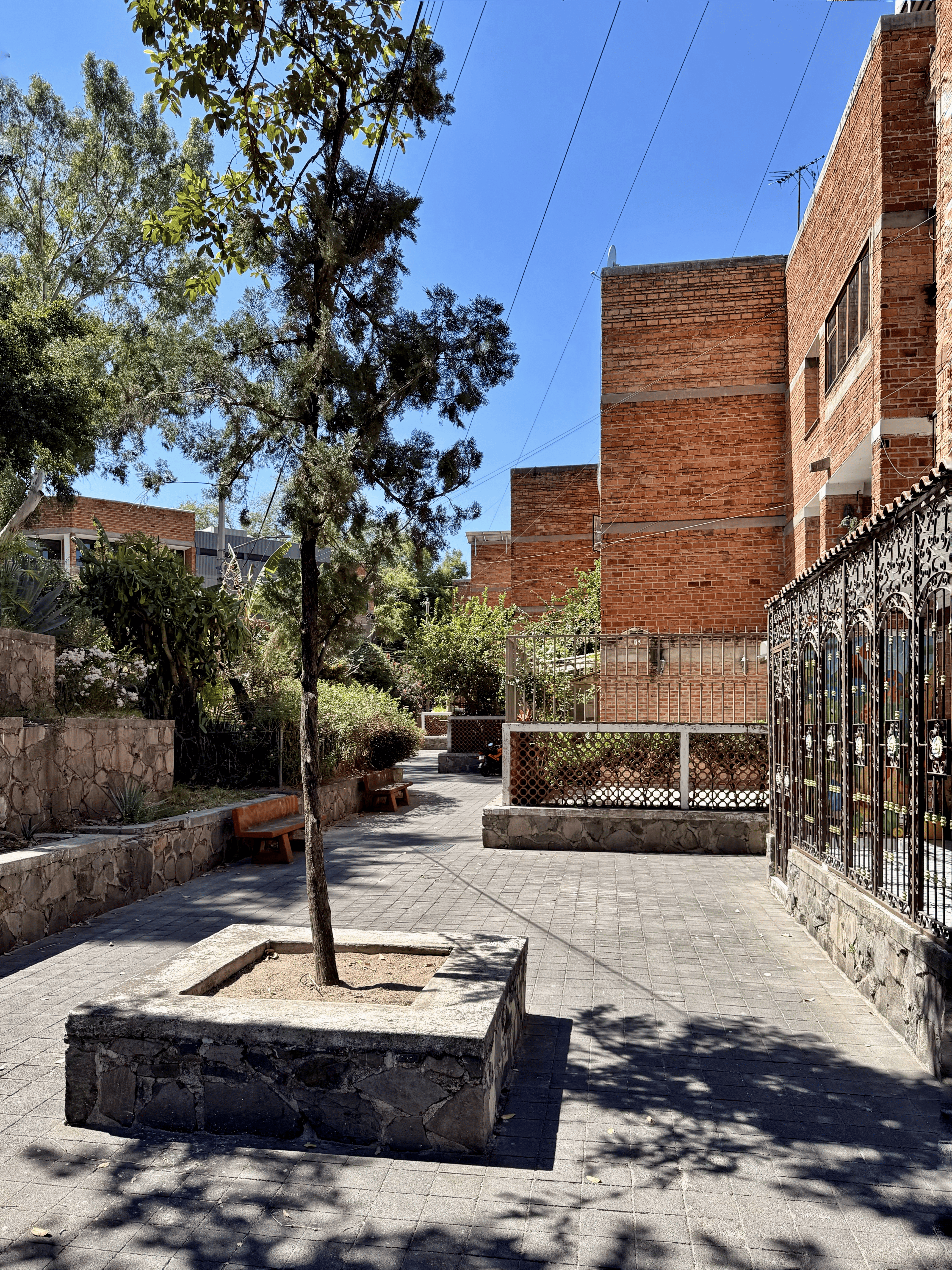 No hay bardas perimetrales, casetas, ni cámaras. Lo que hay son árboles de décadas, que han crecido junto con los niños y ahora dan sombra a las pláticas de los abuelos. Bancas de concreto, jardineras, andadores, canchas y plazoletas que siguen cumpliendo su función sin haberse privatizado, sin haberse desgastado más allá de lo natural. El mobiliario urbano, tosco pero resistente, habla de una época en que la infraestructura era pensada para durar y no para ser reemplazada cada cinco años por una versión más barata.