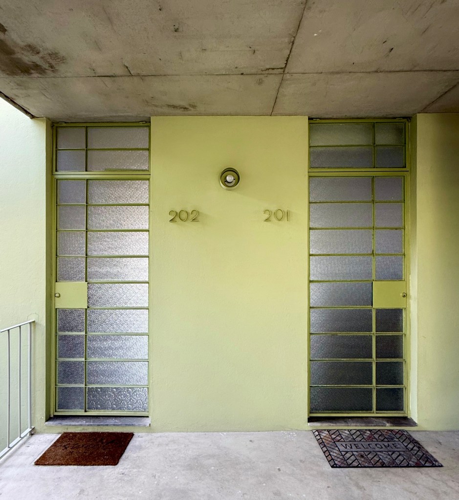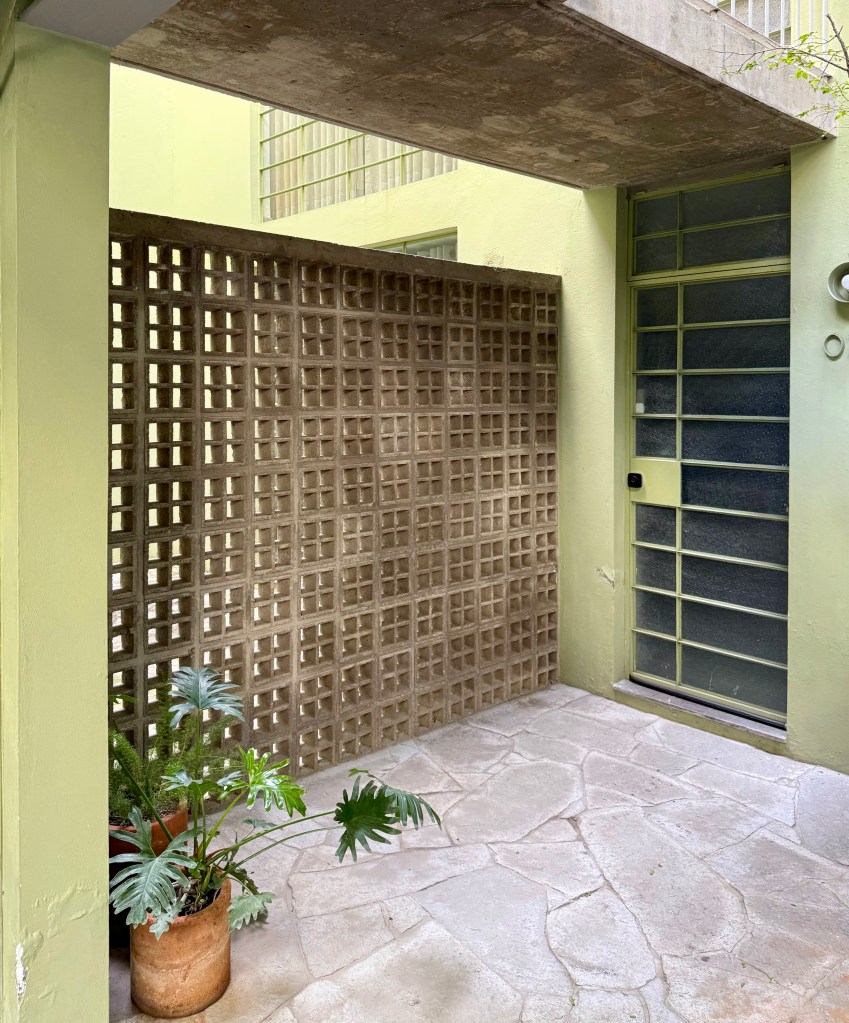 El acceso principal, mediante un zaguán enrejado, prolonga la transición entre lo público y lo privado. El juego entre sólidos y transparencias —muros de ladrillo, celosías, cancelería metálica y vidrio— crea un equilibrio entre protección y apertura, mientras que el color verde claro y los materiales aparentes evocan una modernidad contenida, más funcional que ostentosa.