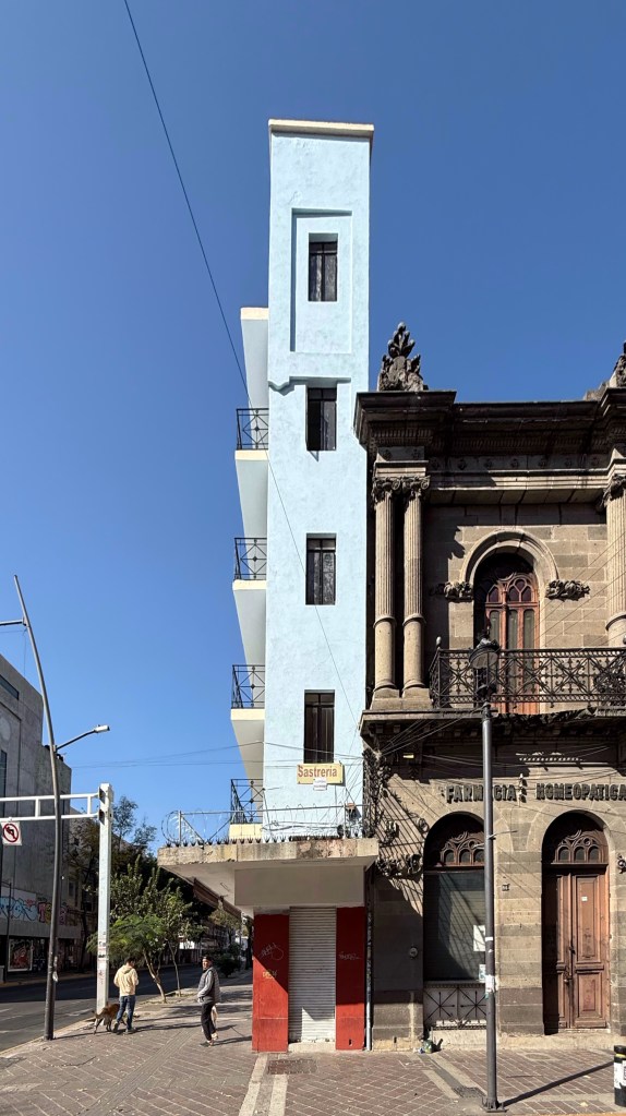 El ensanche de Juárez implicó la expropiación y demolición de decenas de edificios históricos, generando una nueva traza vial y, como consecuencia directa, predios residuales de geometría irregular. El edificio ubicado en Juárez 470 es uno de los ejemplos más extremos de esta condición: su ala oriente presenta una sección extraordinariamente angosta (apenas alrededor de 1.80 metros de muro a muro, más un pasillo exterior de circulación) que lo convierte, con justicia, en uno de los edificios habitacionales más estrechos de la ciudad.