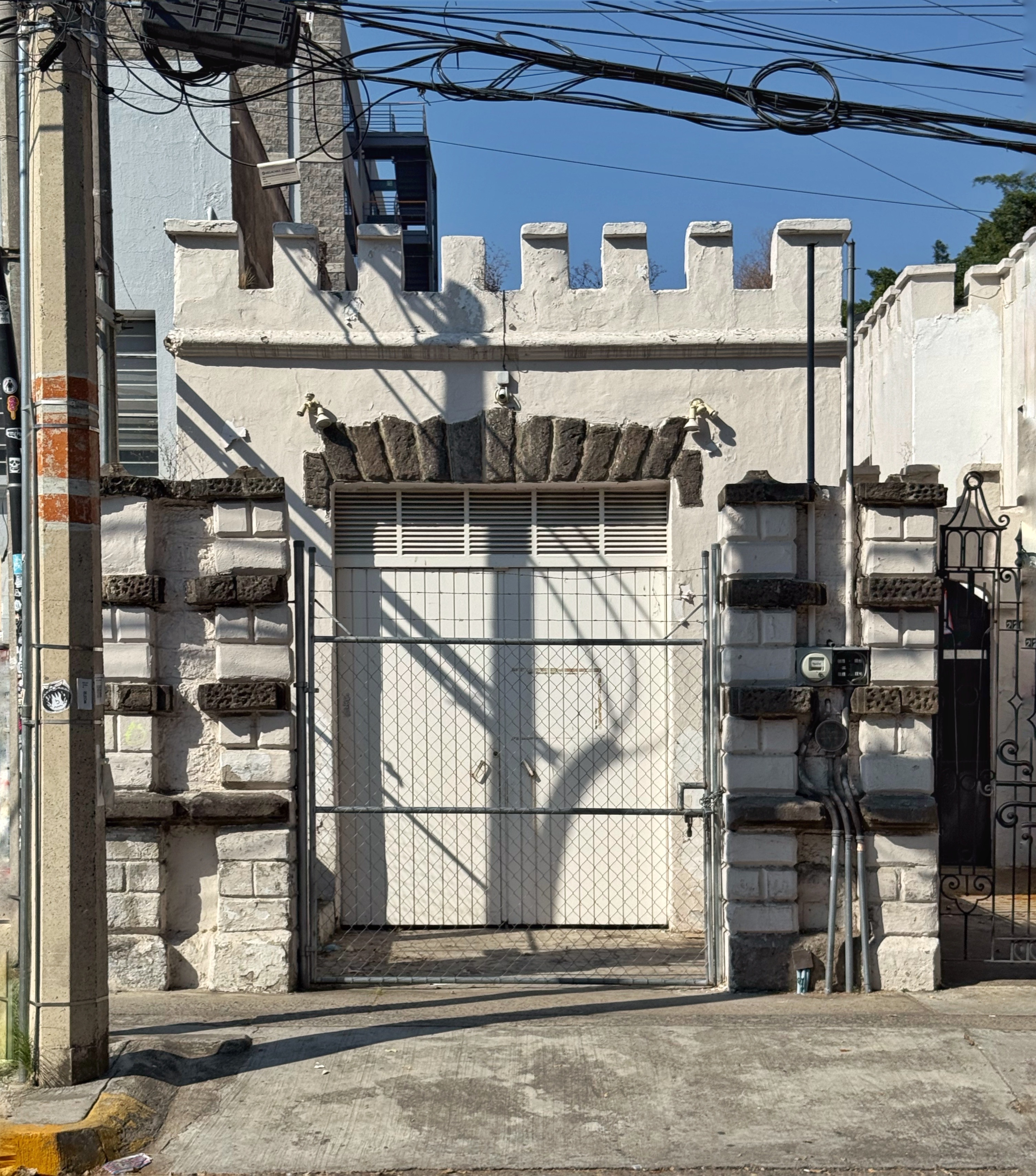 Dentro de este mismo imaginario ecléctico medieval, pueden citarse como antecedentes cercanos las Casas Gómez Luna (Libertad 1652 y 1654) y la Casa Rolleri (España 1359), ambas anteriores y proyectadas por Guillermo de Alba.