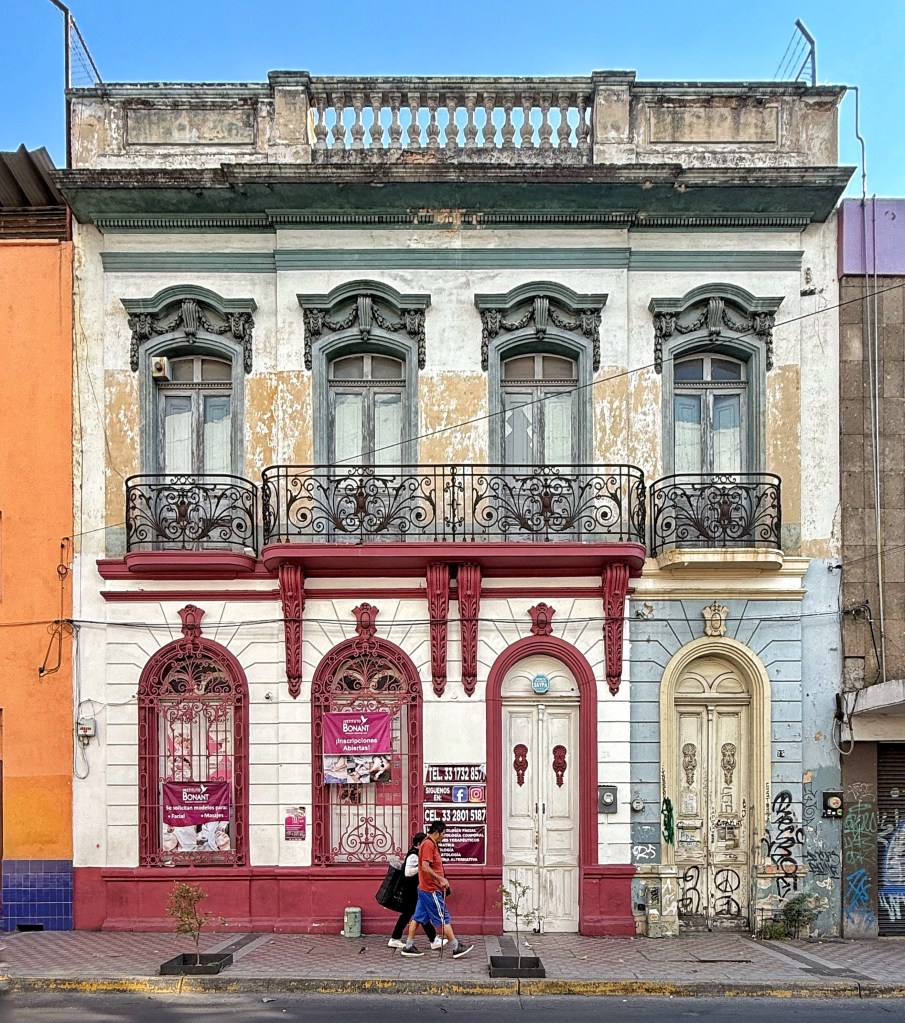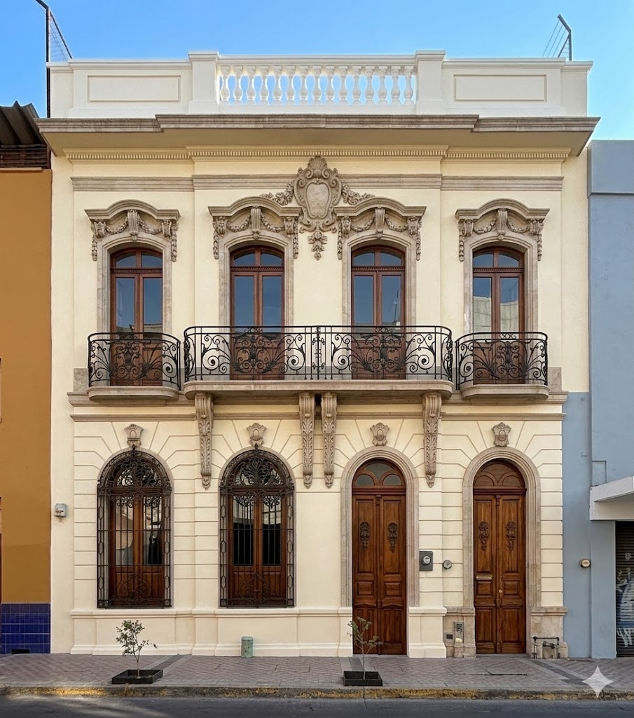 Sobre la calle de Enrique González Martínez —que anteriormente llevaba el antiguo y mucho más evocador nombre de Parroquia, cuyo cambio fue, sin duda, un desacierto— se encuentra esta bella casa bien conservada de la época porfiriana, probablemente construida durante la primera década del siglo XX. Es una de las poquísimas fincas de la cuadra (y de la calle) que conservan su fachada completamente original; milagrosamente, su planta baja no ha sido transformada para uso comercial.